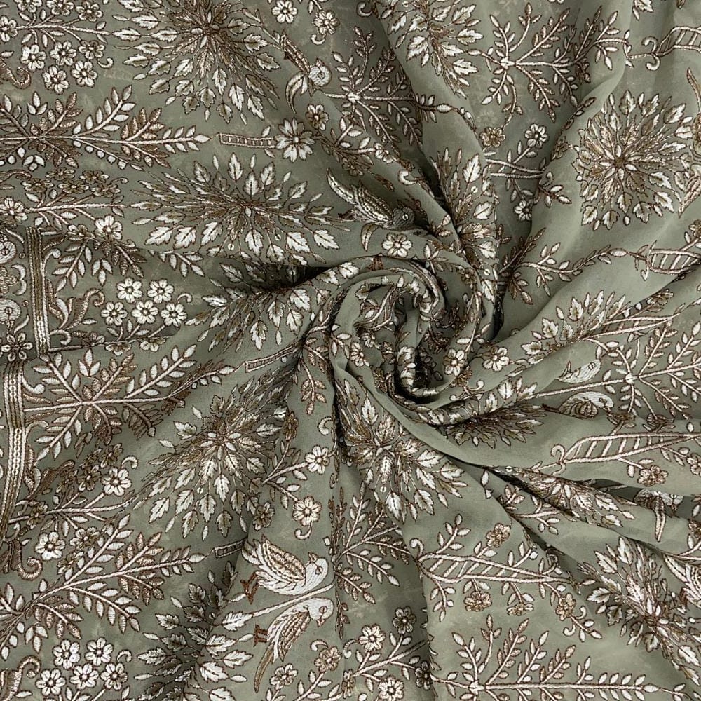 | Fabric Name | Olive Color Traditional Georgette Embroidered Fabric |