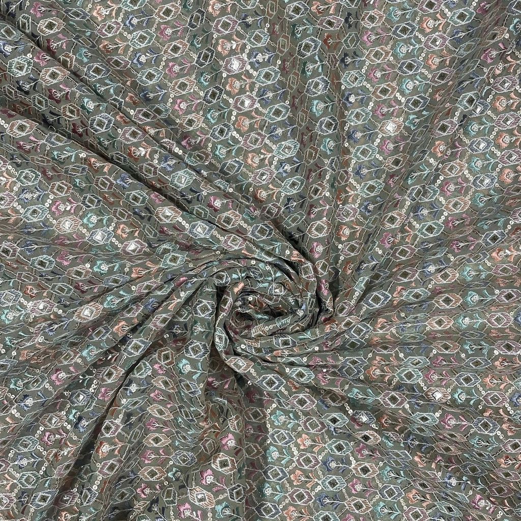 | Fabric Name | Olive Green Color Georgette Embroidered Fabric |