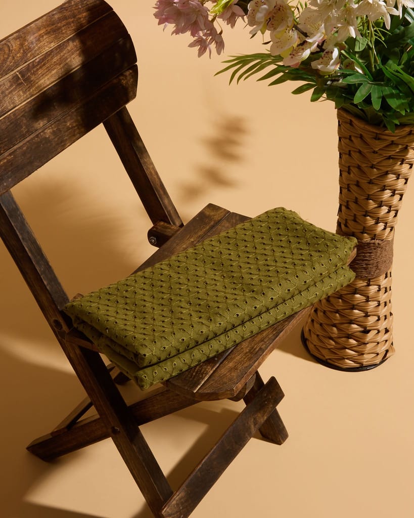 Fabric Name | Olive Green Embroidered Cotton Hakoba Fabric |