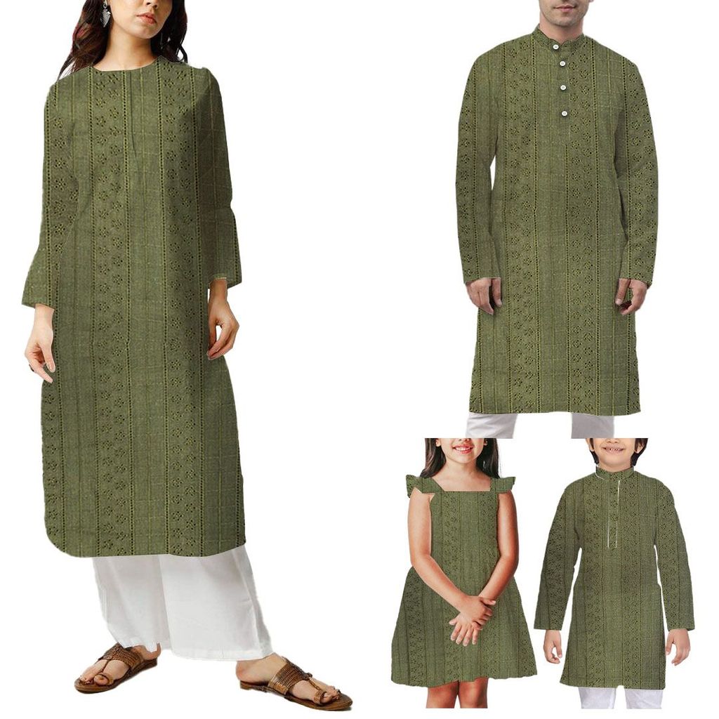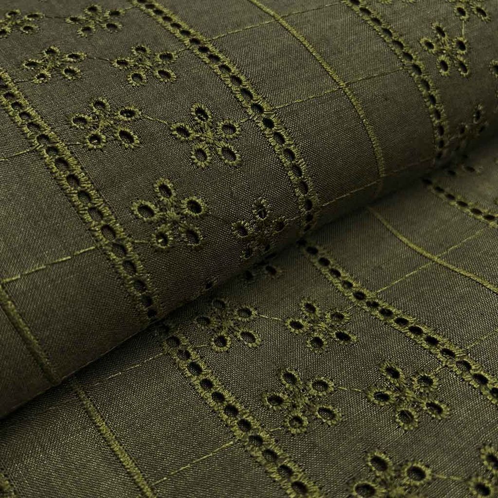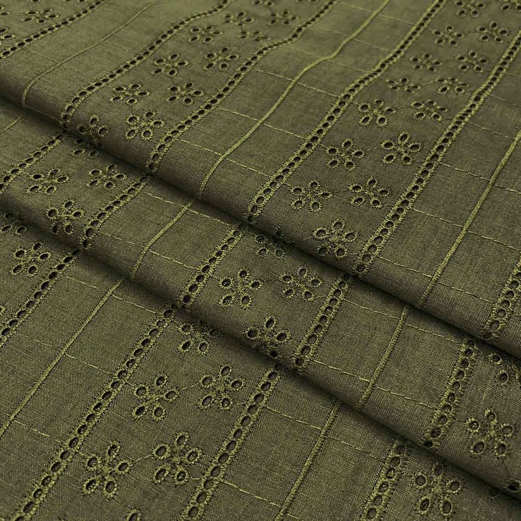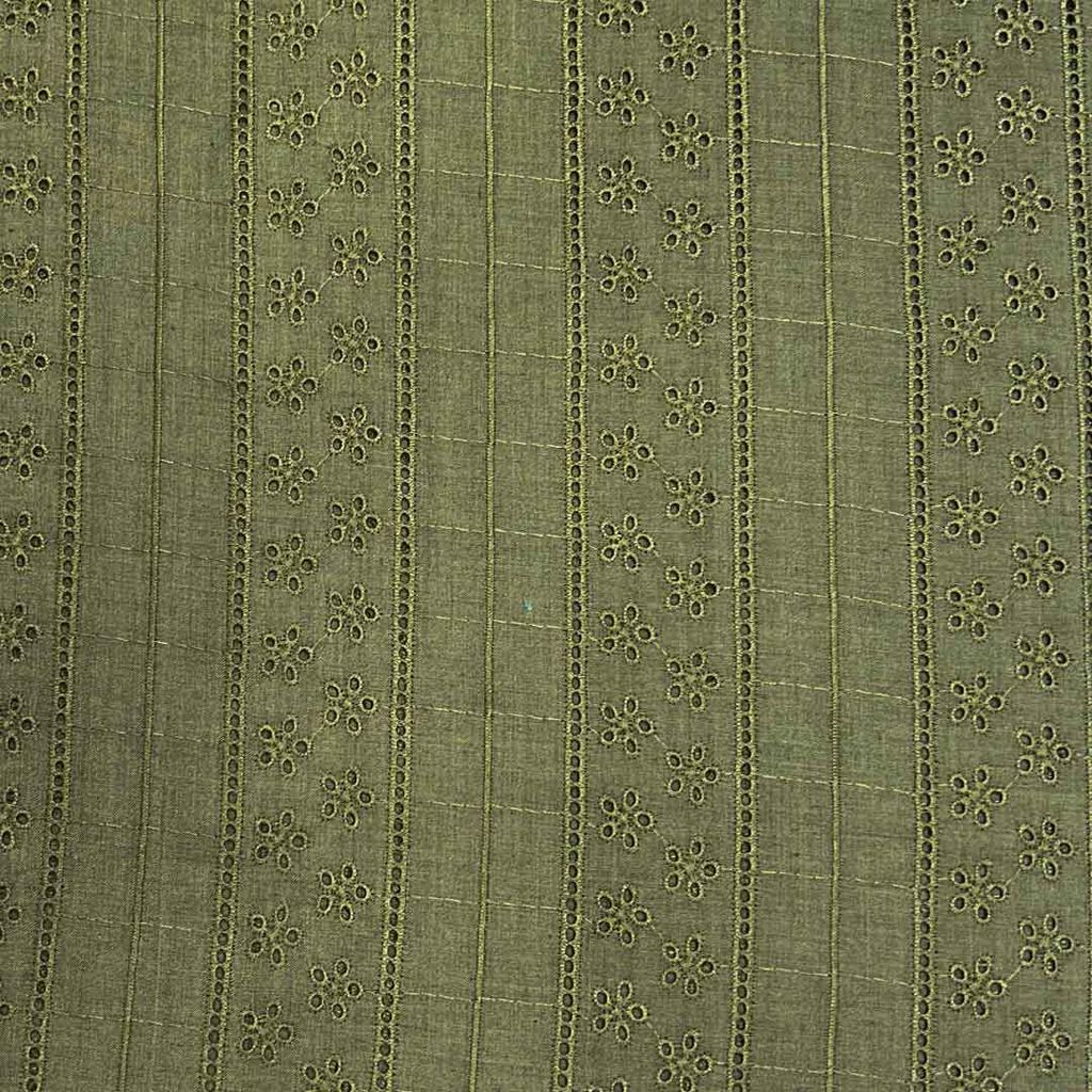 Elevate your sewing projects with the beautiful Olive Green Shade Embroidered Cotton Hakoba Print Fabric. This fabric features a stunning embroidered pattern and is made from high-quality cotton, providing both style and comfort. Perfect for creating one-of-a-kind pieces that will make you stand out. SKU- HHKOO5D