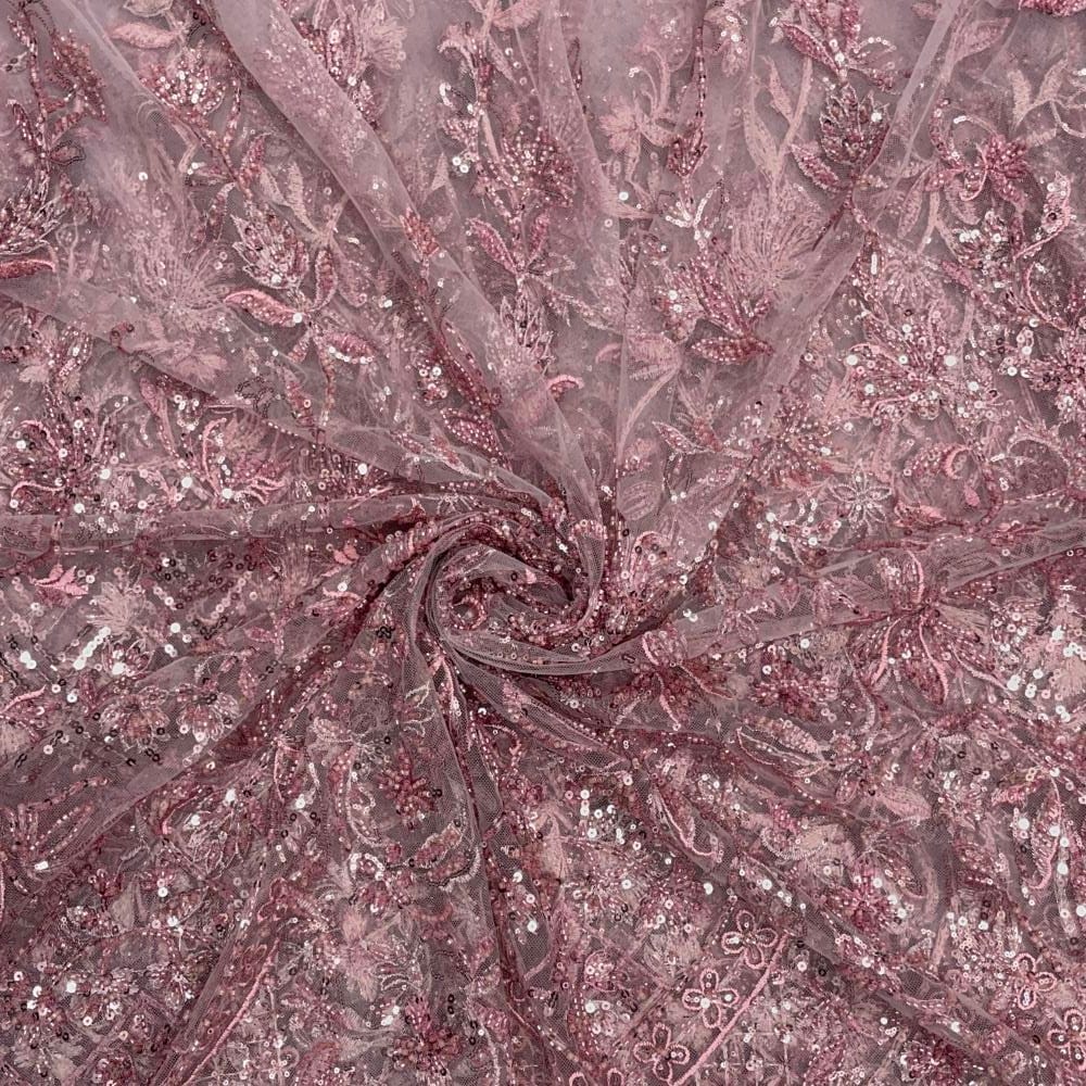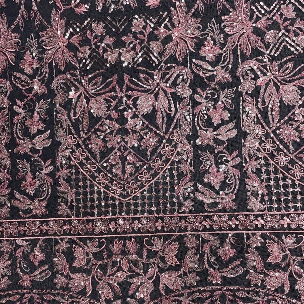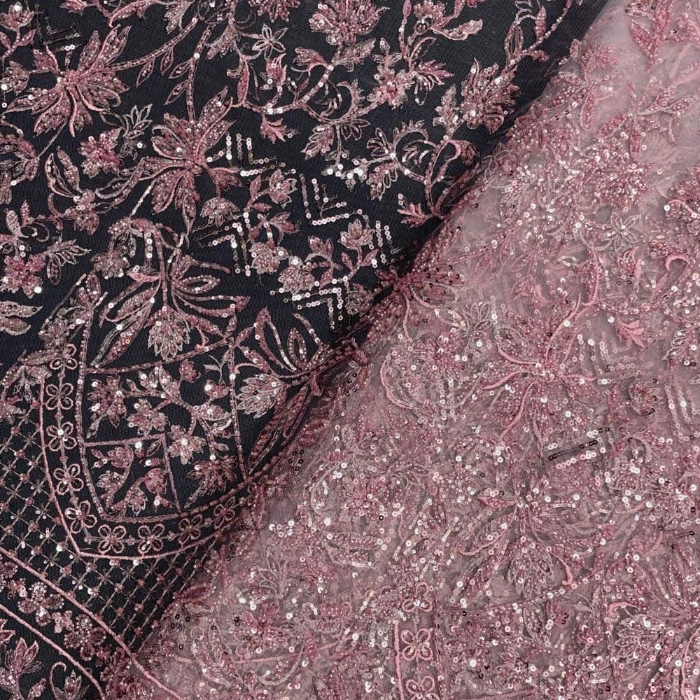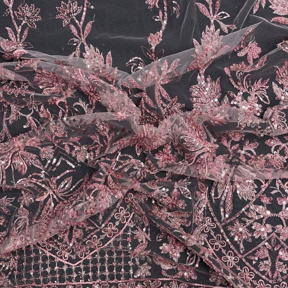 | Fabric Name | Onion Pink Color Geometric Embroidered Net Fabric |