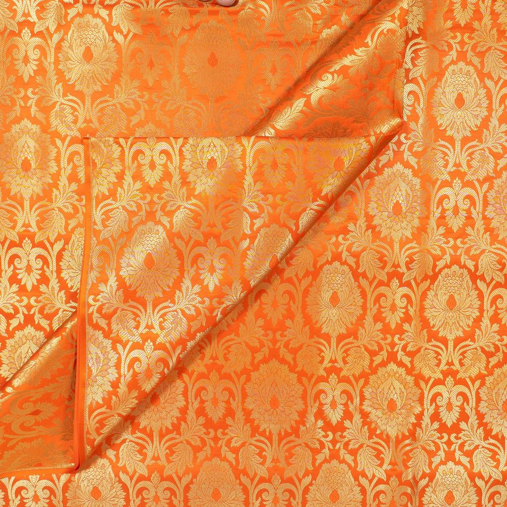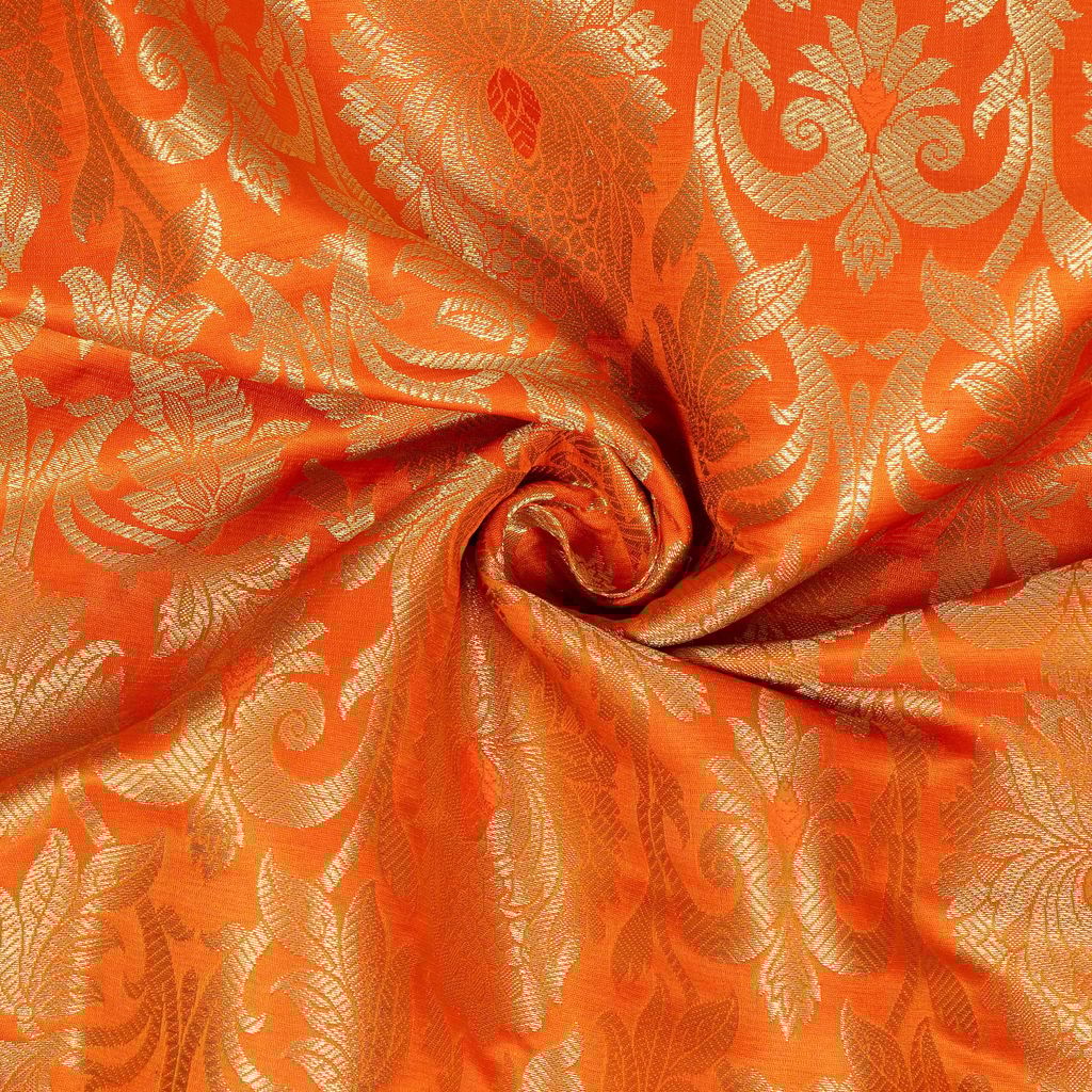 The house of Fab Couture presents an intricately decorative brocade fabric. The floral motifs are woven throughout the length of the canvas. The vintage-inspired design comes with an appealing shine that can elevate any simple look. Doused in wine, red, purple, green, white and grey, the luxurious fabric can be crafted into a dramatic-sleeved blouse or a long A-line shirt or a lehenga skirt that will look charming. You can pick your favourite colour from the richly textured fabric. SKU:100236746C