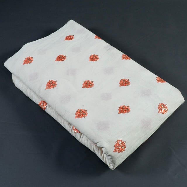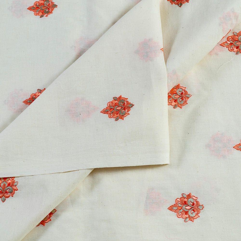 This fabric is from FabCouture Cotton Embroideries and the base is 60's cambric cotton with Peach coloured floral bootis over the length of the fabric which makes it perfect for kurtis, kurtas, summer dresses and trousers too. SKU:10022921