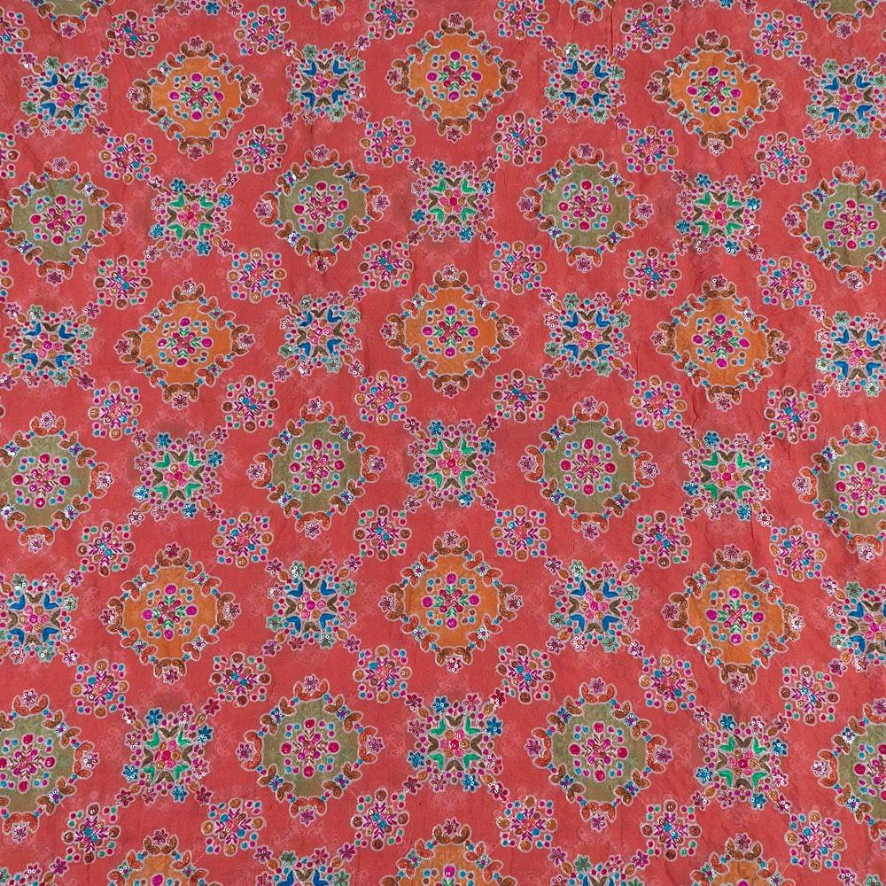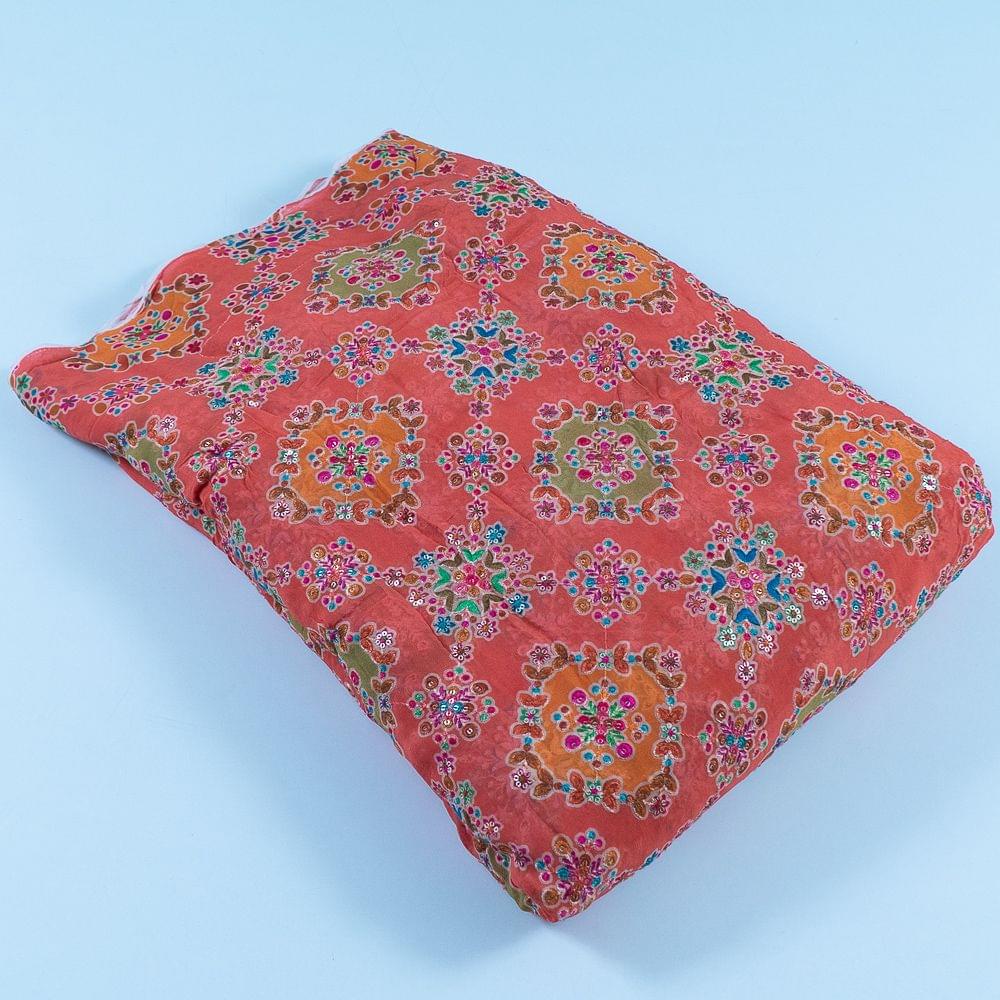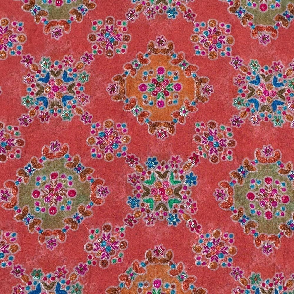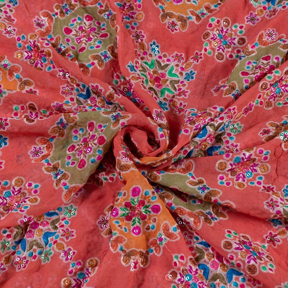 | Fabric Name | Orange Color Georgette Print With Embroidery |