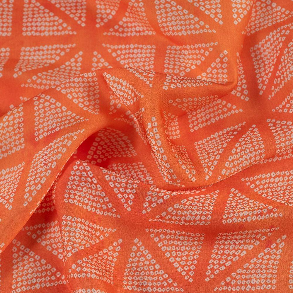 Add a beautiful sheen to your gorgeous wardrobe with our georgette Satin Fabric. An exclusive design is created by combining Bandhini prints in geometric patterns. For Mehendi-Haldi outfits, the fabric's bouncy appearance lends itself well. One can choose from various colours ranging from mustard, purple to navy, bottle green, and salmon pink. The design goes parallel to the length. Go for this versatile fabric to be in the trend. SKU:100221547