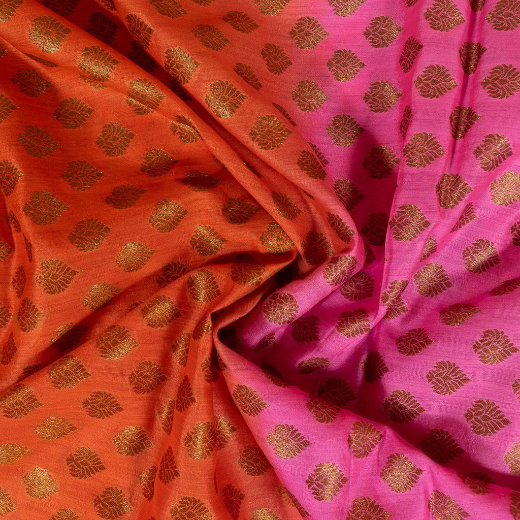 | Fabric Name | Orange with Pink Color Silk Shibori Booti Fabric |