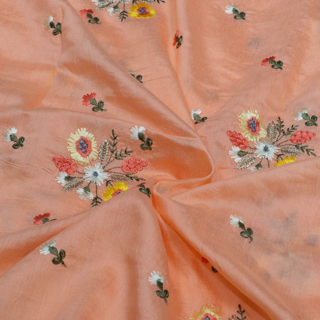 | Fabric Name | Peach Color Chanderi Embroidered Fabric |