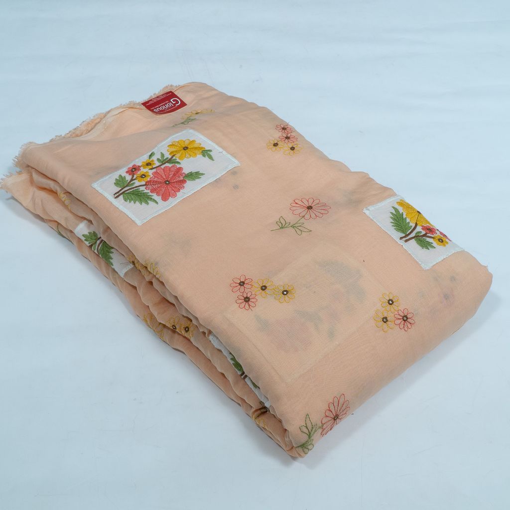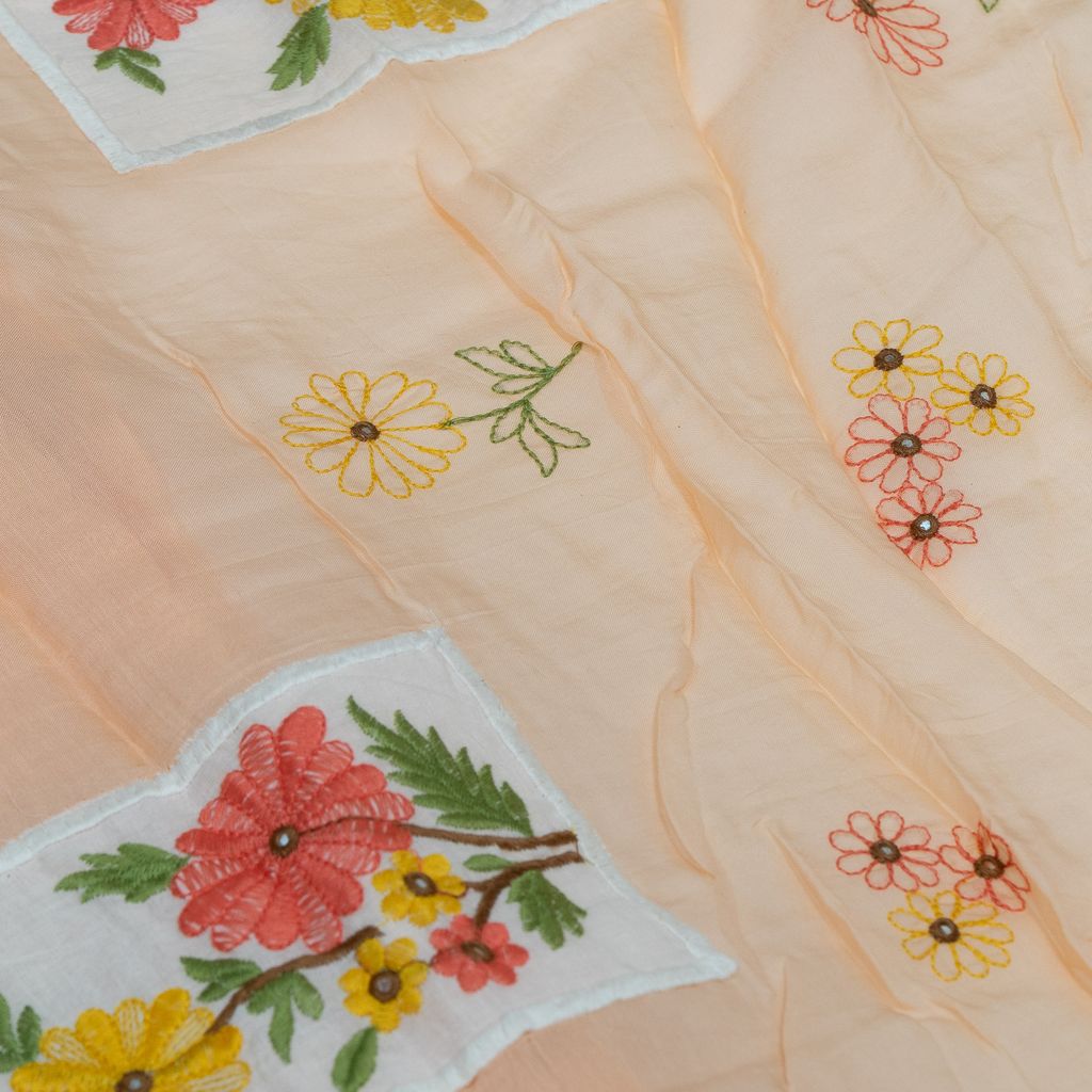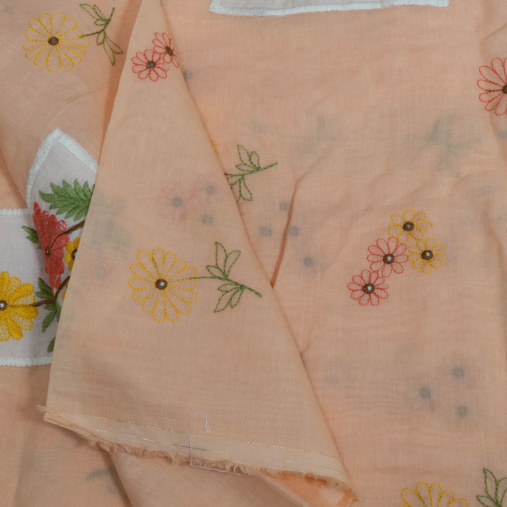 | Fabric Name | Peach Color Chanderi Patch Work Embroidered Fabric |