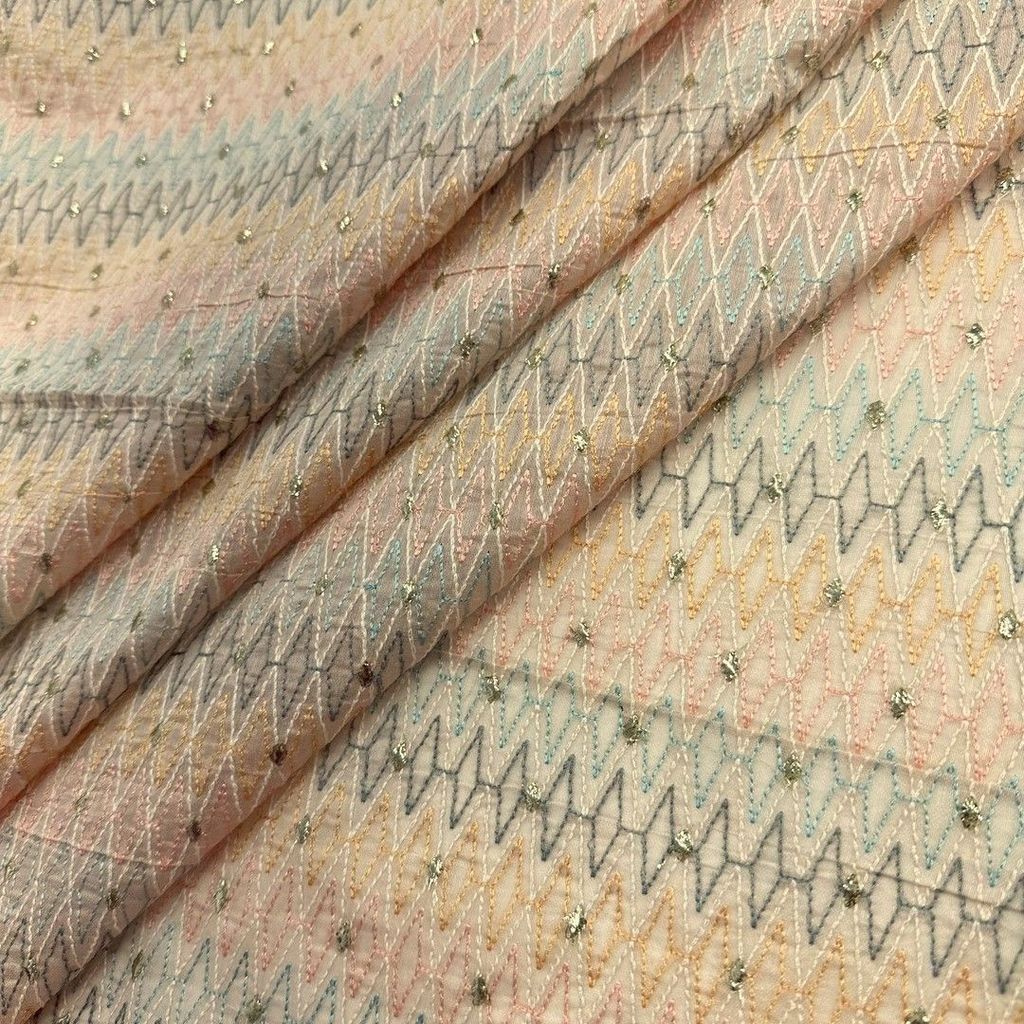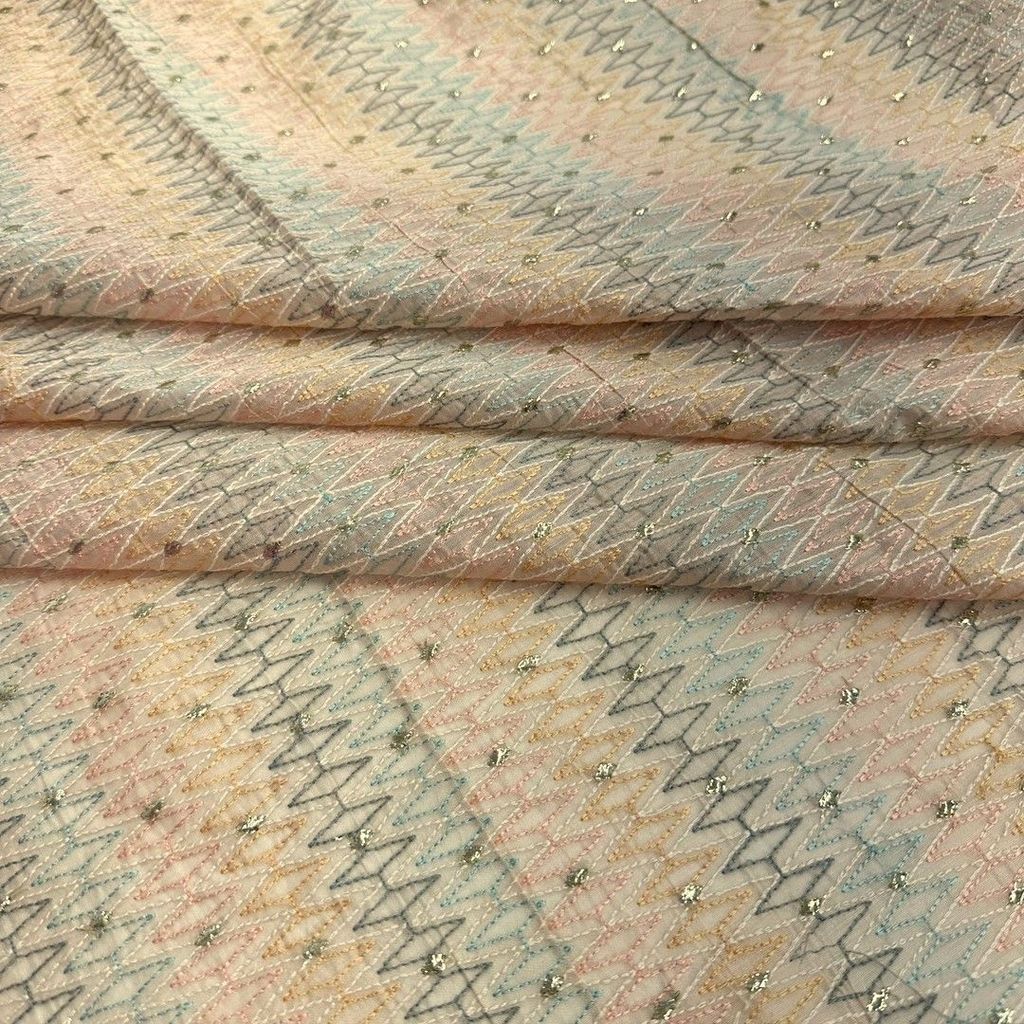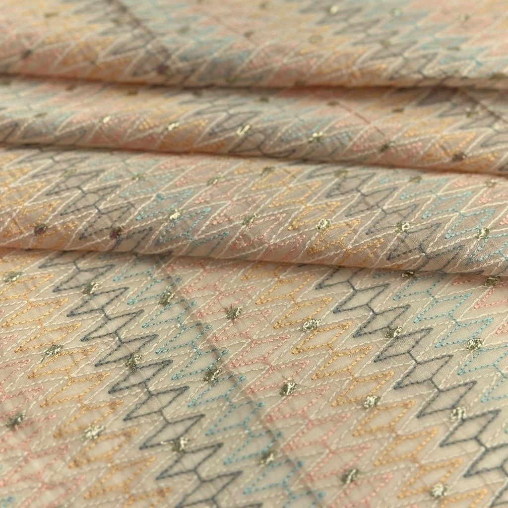 | Fabric Name | Peach Chanderi Fabric With Colorful Zigzag Embroidery |