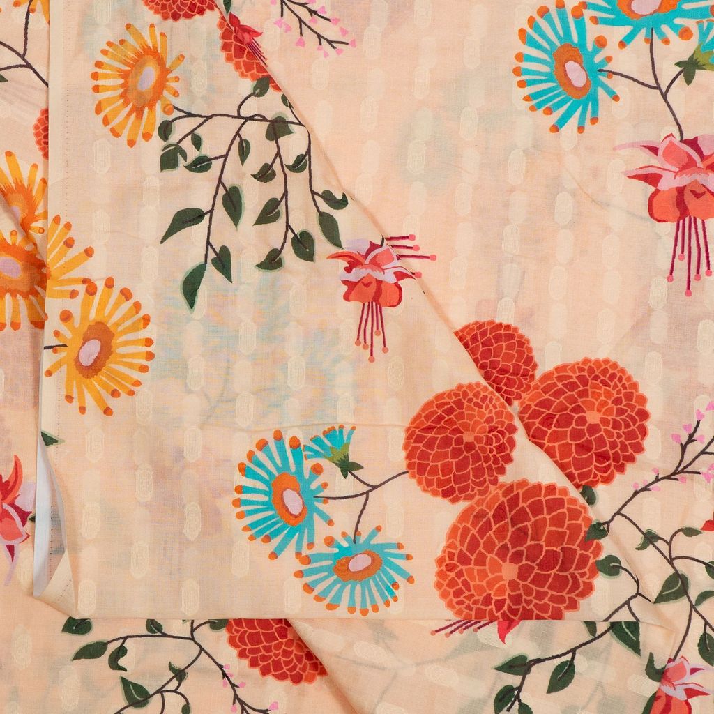 | Fabric Name | Peach Color Cotton Orbit Booti Floral Digital Printed Fabric |