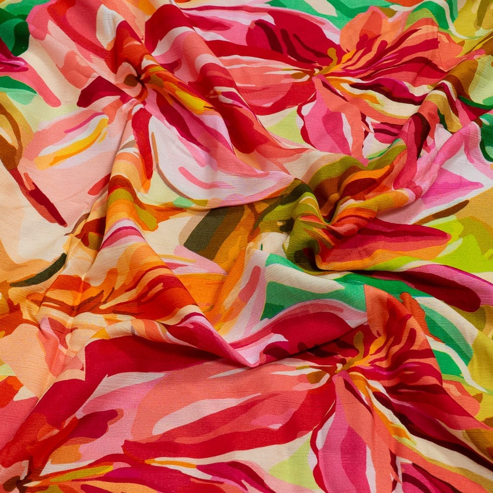 | Fabric Name | Peach Color Cotton Rayon Crepe Digital Printed Fabric |