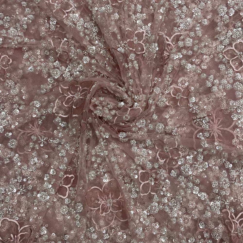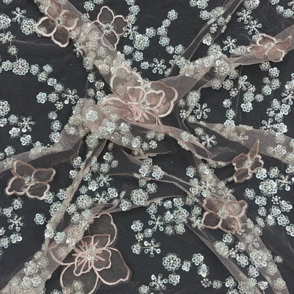 | Fabric Name | Peach Color Floral Embroidered Net Fabric |