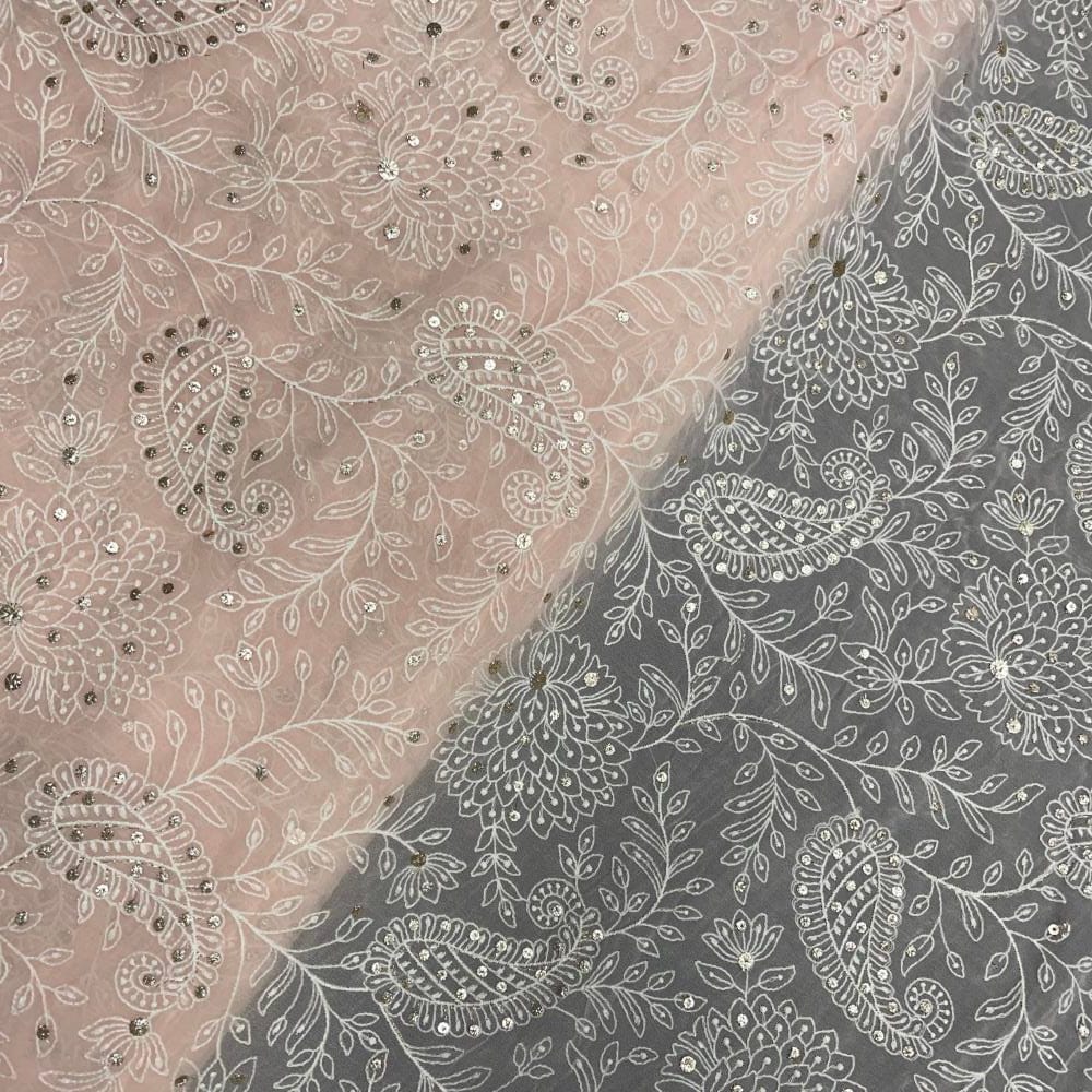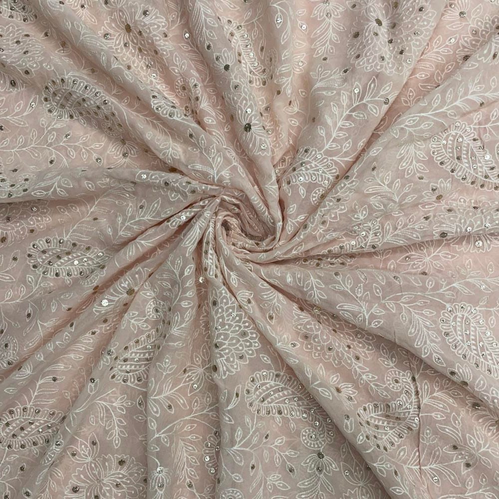 | Fabric Name | Peach Color Floral Georgette Embroidered Fabric |