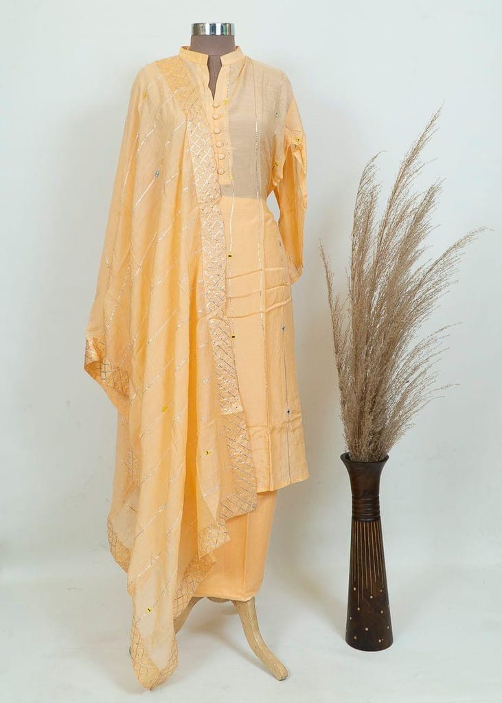 | Fabric Name | Peach Color Muslin Shirt With Shantoon Bottom And Muslin Print Dupatta |