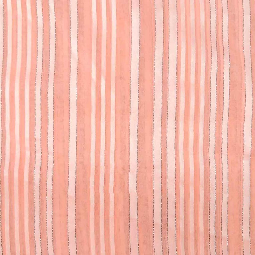 This lightweight and breathable Peach Stripes Printed Georgette Fabric is perfect for making beautiful blouses, skirts, and dresses. With a comfortable texture, the fabric is wrinkle-resistant and has a great draping quality. SKU- GE101I