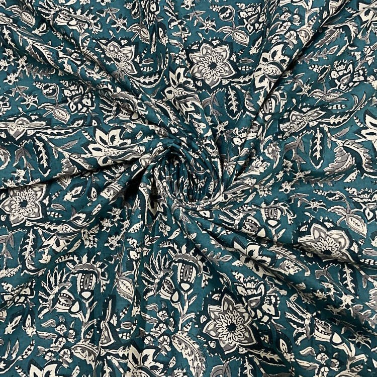 | Fabric Name | Peacock Blue Color Cotton Cambric Printed Fabric |