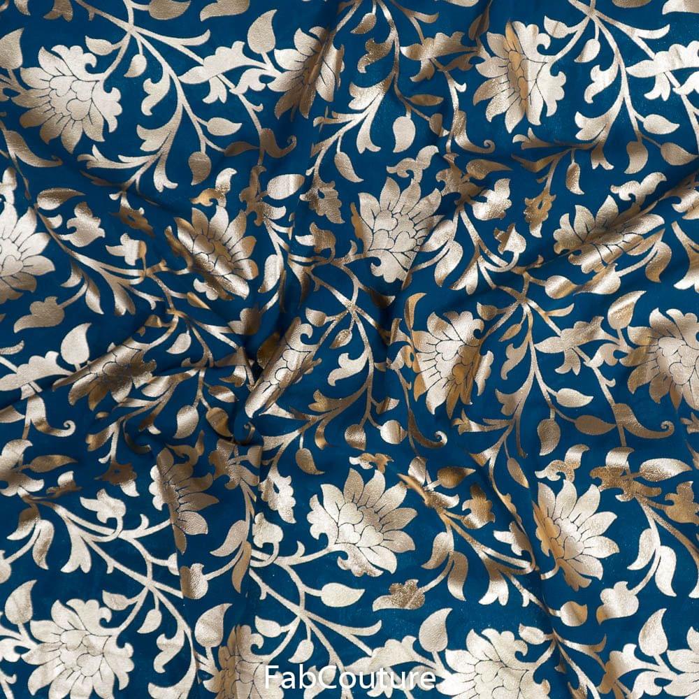 Peacock Green Colour Georgette Foil Floral Print , This georgette fabric is sheer, flowy and has an excellent fall which makes it best for sarees, dresses, draped silhouttes, plazzo pants, blouses and tops. The foil print is the cheery on top which makes it dressier. SKU: 10021589
