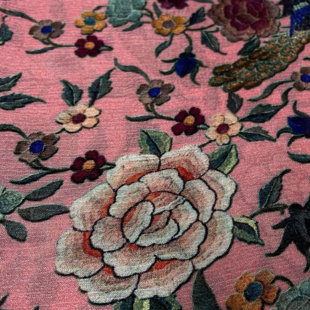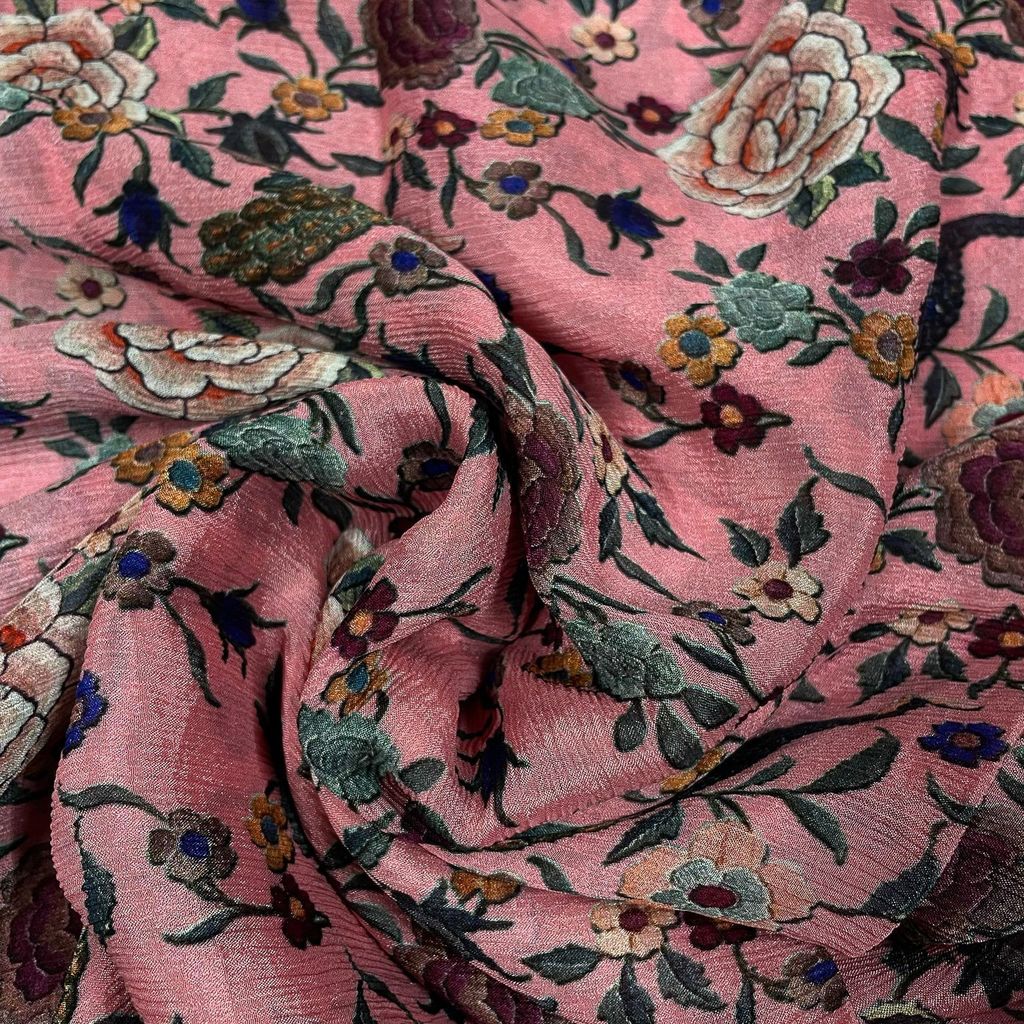 | Fabric Name | Pink Color Chinon Chiffon Printed Fabric |