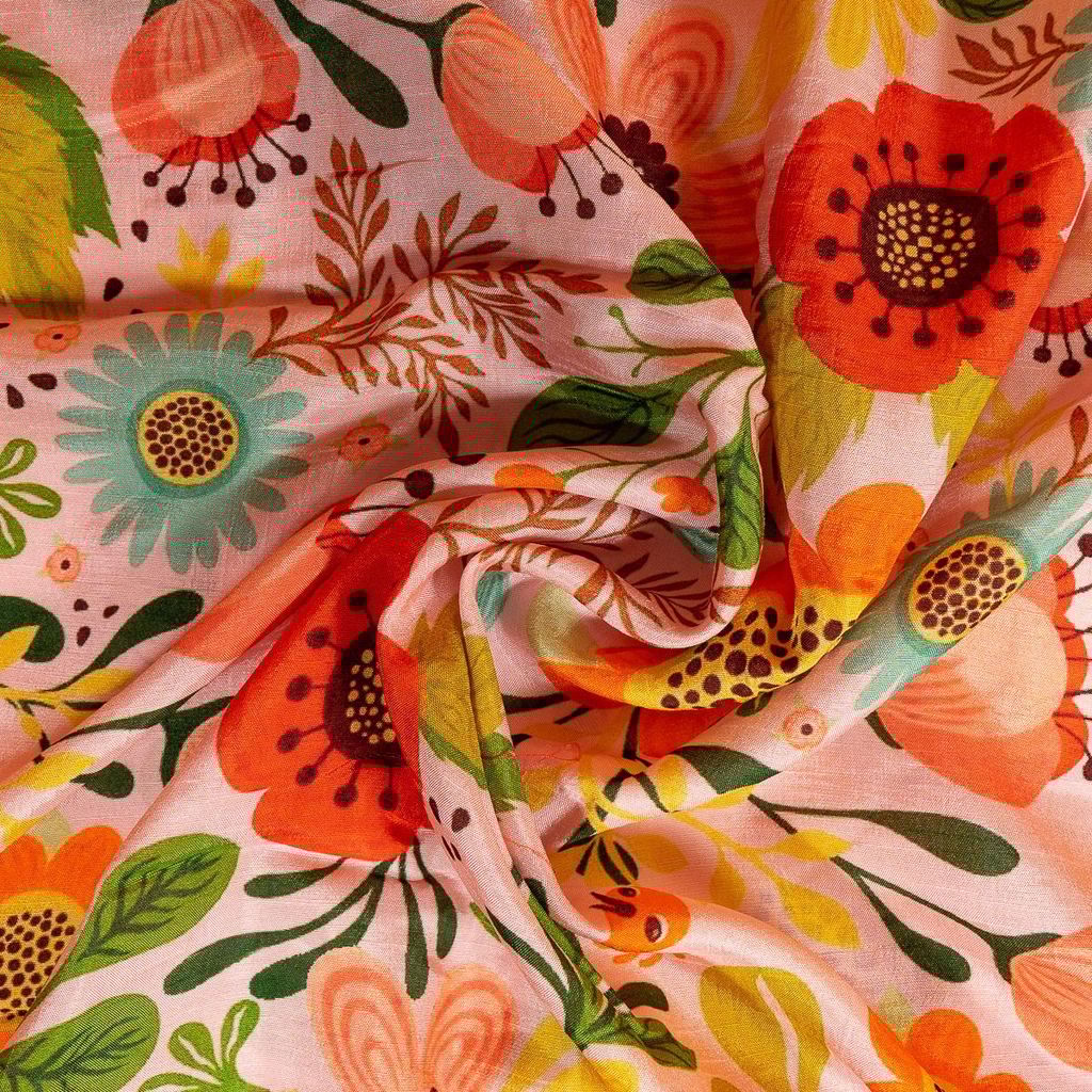 | Fabric Name | Pink Color Dola Silk Digital Printed Fabric |