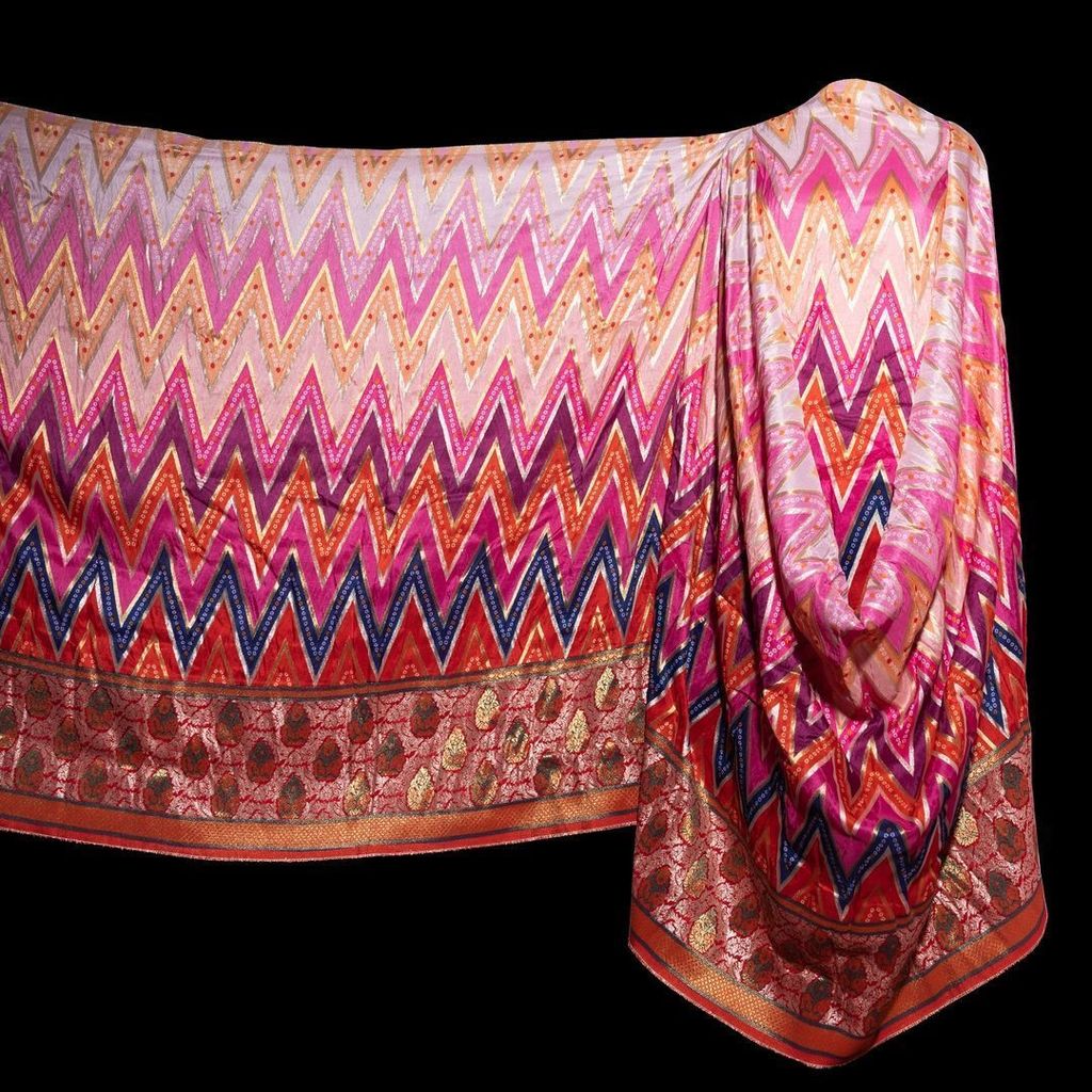 | Fabric Name | Pink Jacquard Positioned Print On Dola Silk |