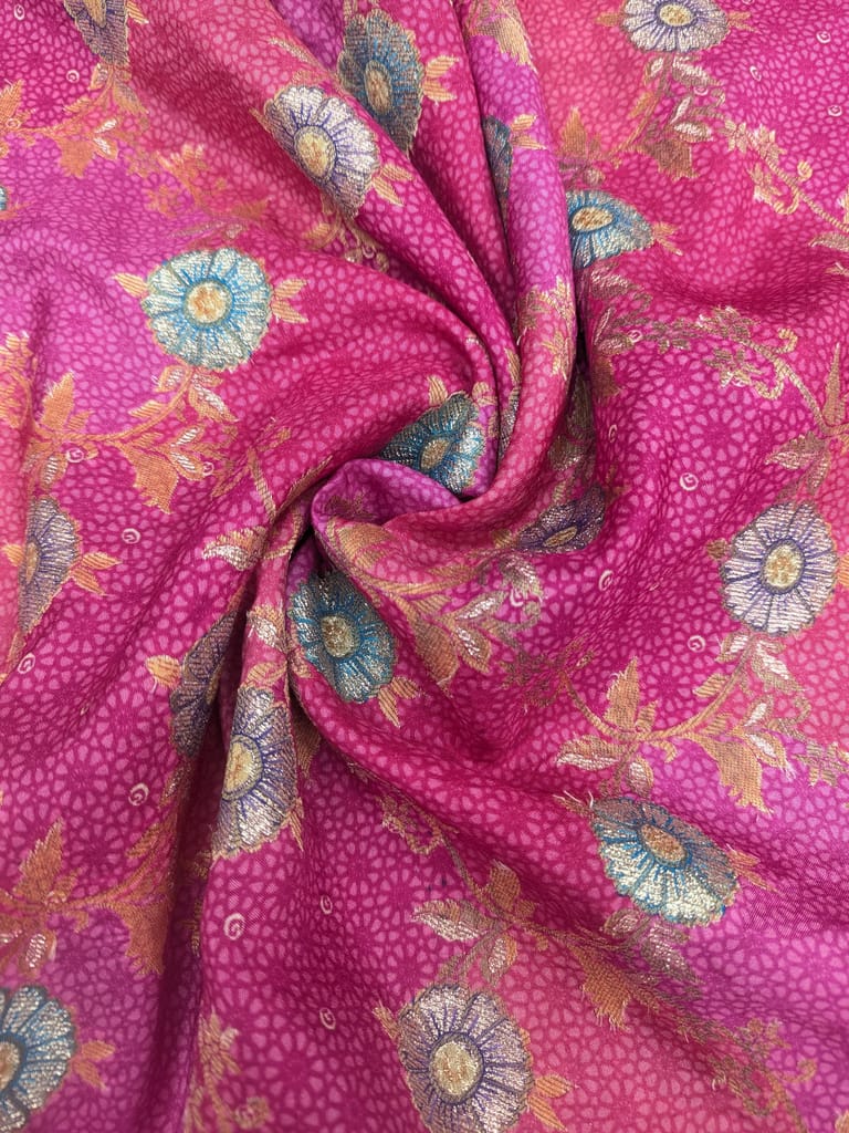 | Fabric Name | Pink Jacquard Positioned Print On Dola Silk |