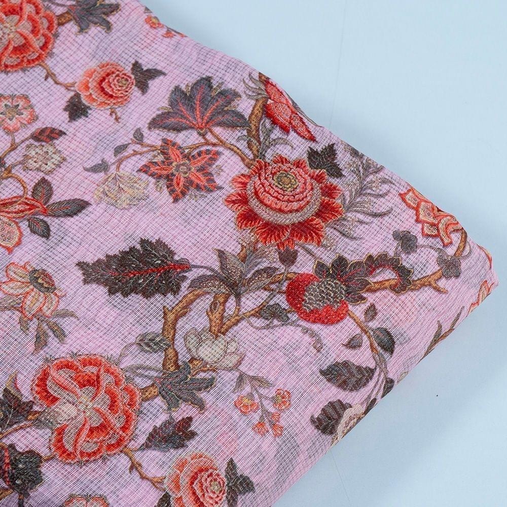 6267b36257934847fe994fc5 Pink Colour Kota Digital Printed Fabric https://www.fabcouture.in/s/5a6ef16301bd210c588e3577/6929aca05c92b28fb841eb2a/100222841hpercent20-3-.jpg This kota floral print is from FabCouture Kota Doria Print Collection. It is a good choice for summers and is very soothing and cool to wear. It can be worn as a kurti, salwar kameez or a dupatta as well. It is also good for sarees and pugris. SKU:100222841H 100222841H