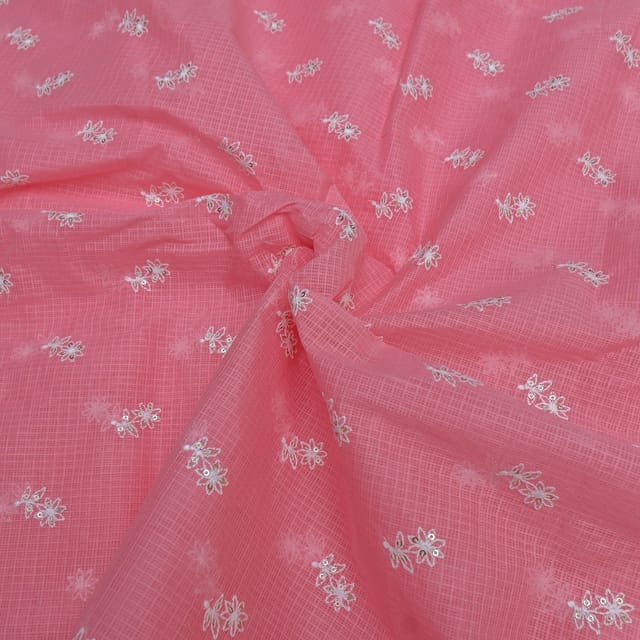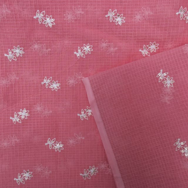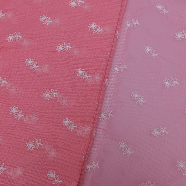 Fabric Name | Pink Color Kota Doria Embroidered Fabric |