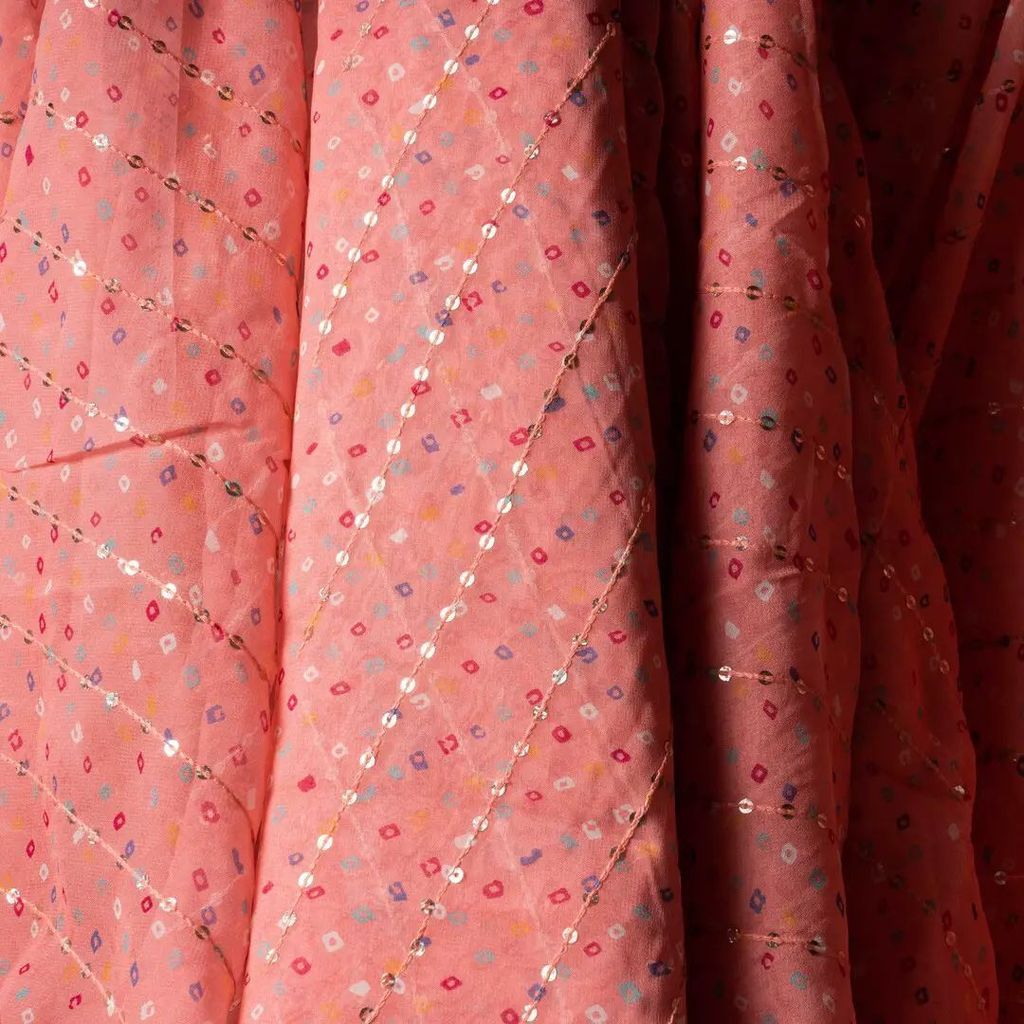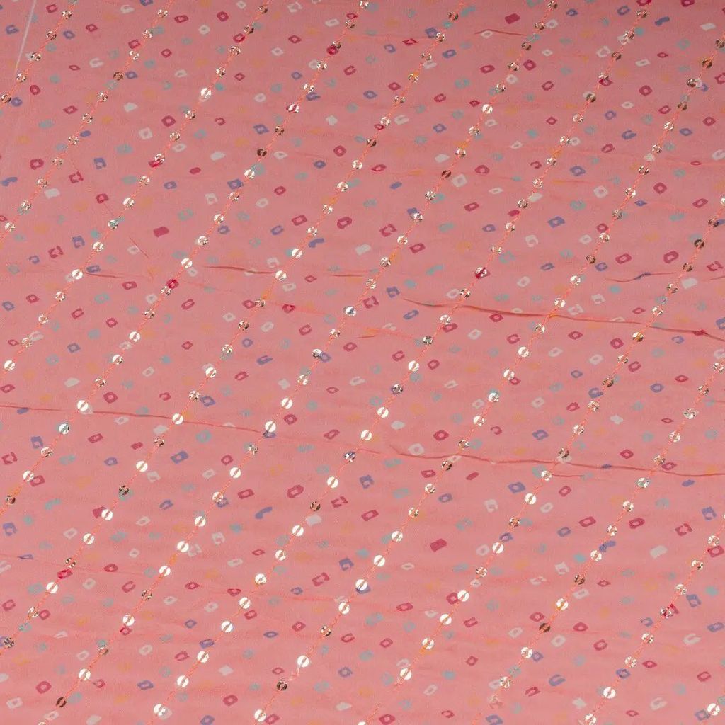 | Fabric Name | Pink Pure Viscose Georgette Bandhej Prints with Embroidery |