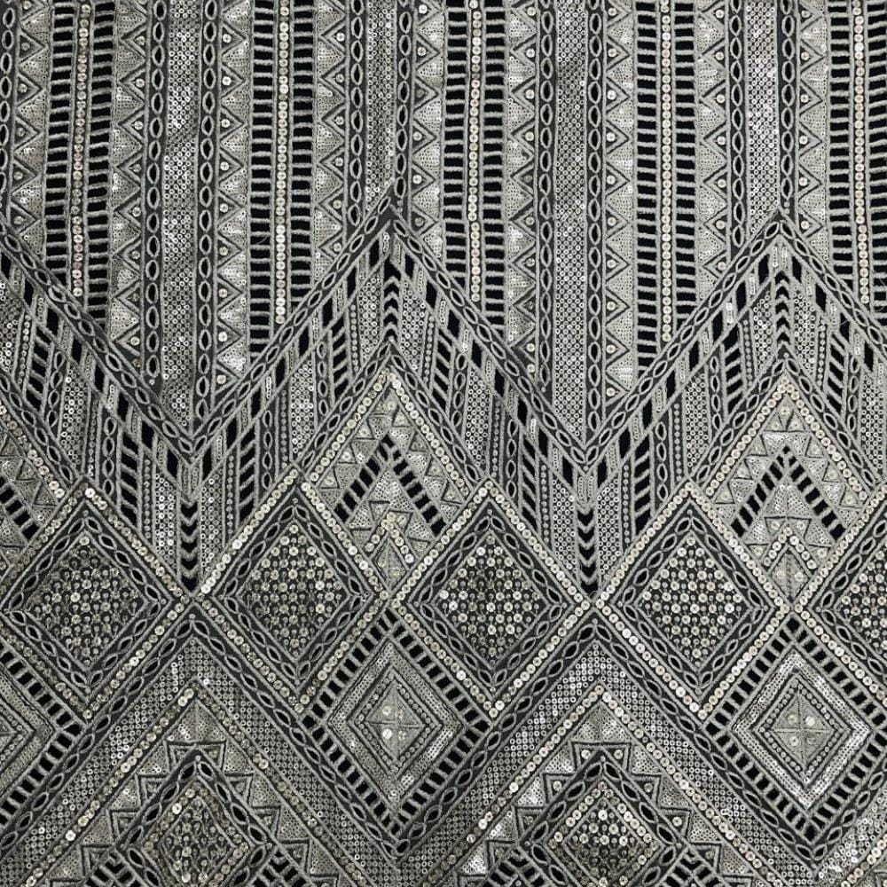 | Fabric Name | Pista Green Color Geometric Embroidered Net Fabric |
