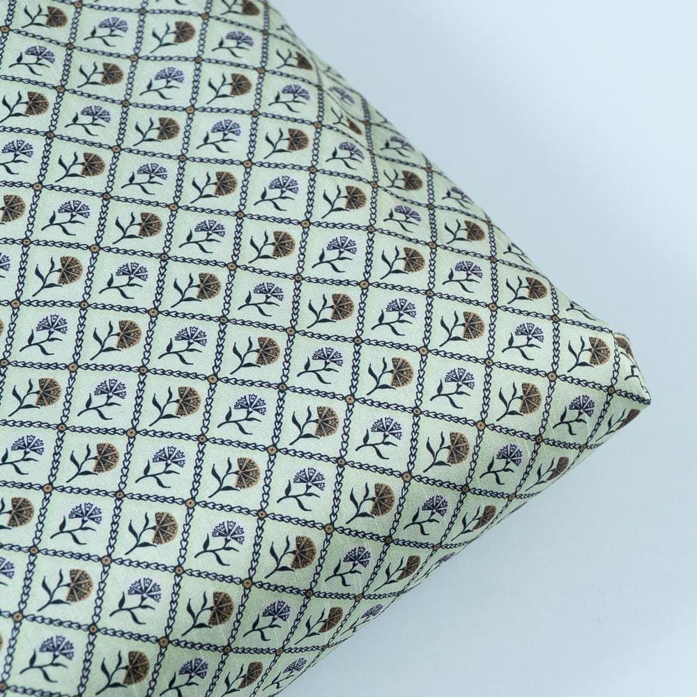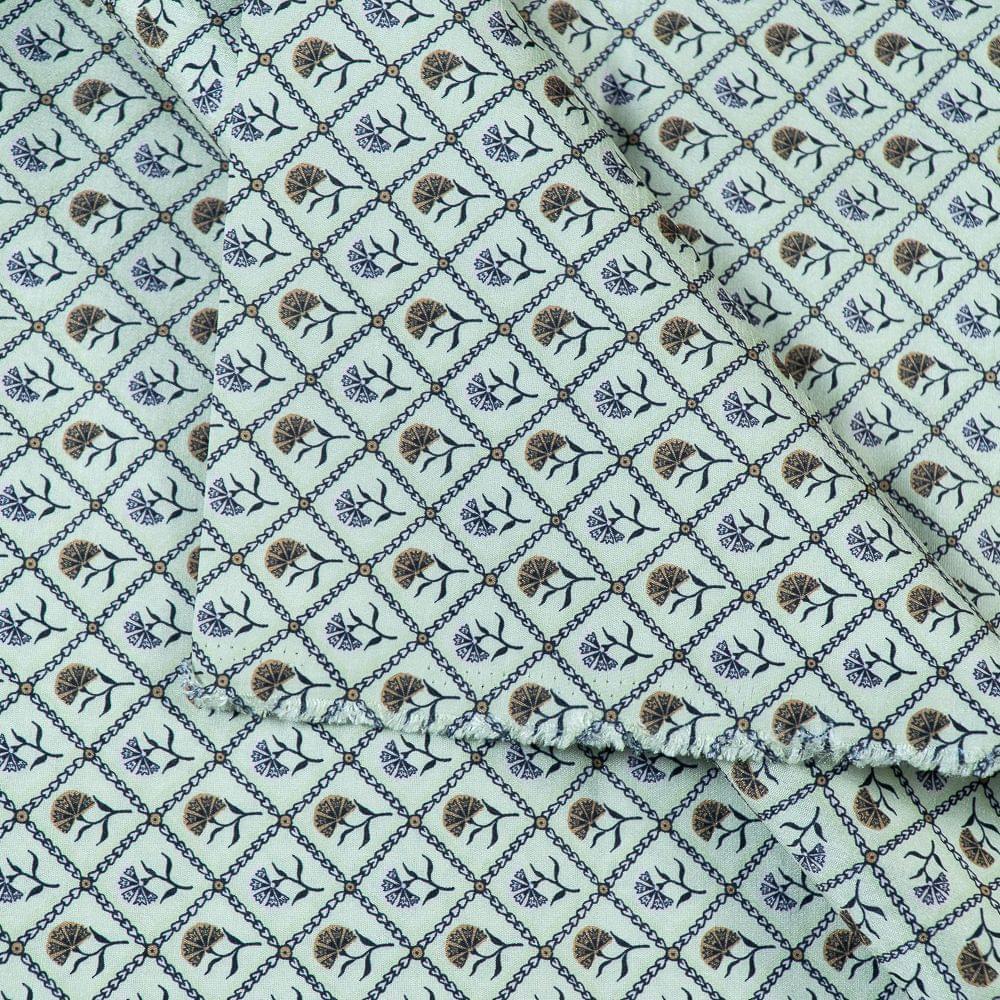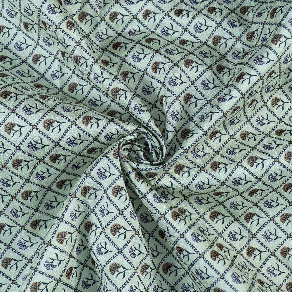 | Fabric Name | Pista Green Color Poly Raw Silk Digital Print |