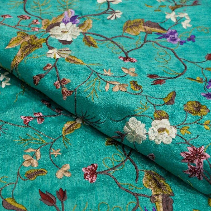 Shop for exclusive Poly Dupion Embroidery fabric this wedding season at Fab Couture - India's Exclusive Fabric Destination., SKU:10018354 POLY DUP EMB 12715/5930