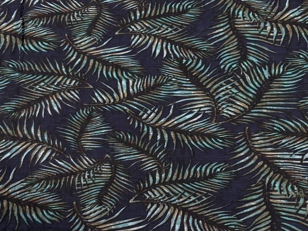 Printed Cotton Navy Blue Leaves Width 56 Inch / 142 Cm SKU:K0320