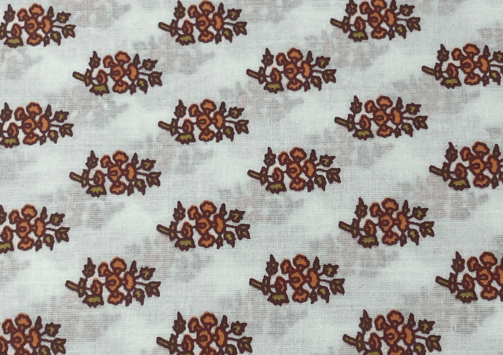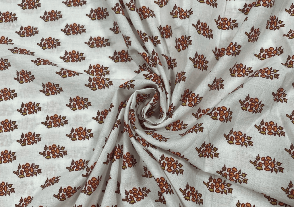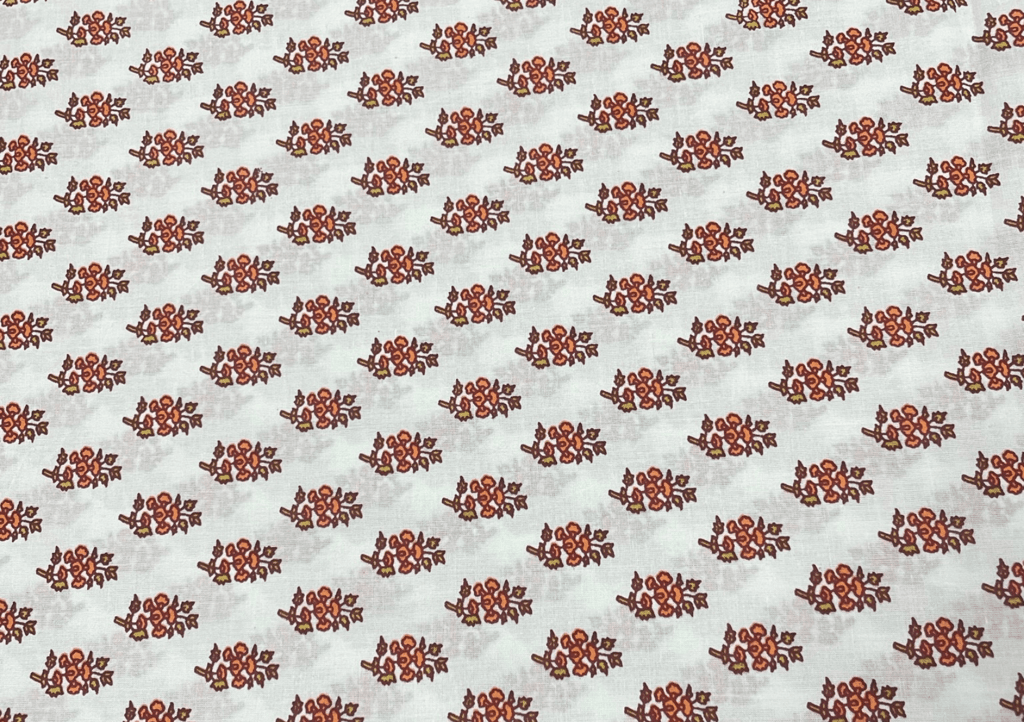 Printed Cotton Voil White Orange Floral Width 44 Inch / 112 Cm SKU:K3147