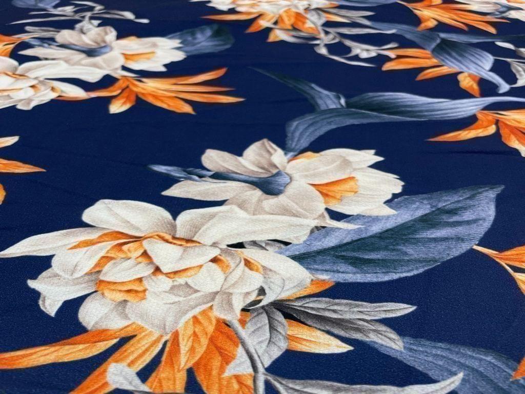 Printed Georgette Navy Blue White Flowers Width 44 Inch / 112 Cm SKU:K1873