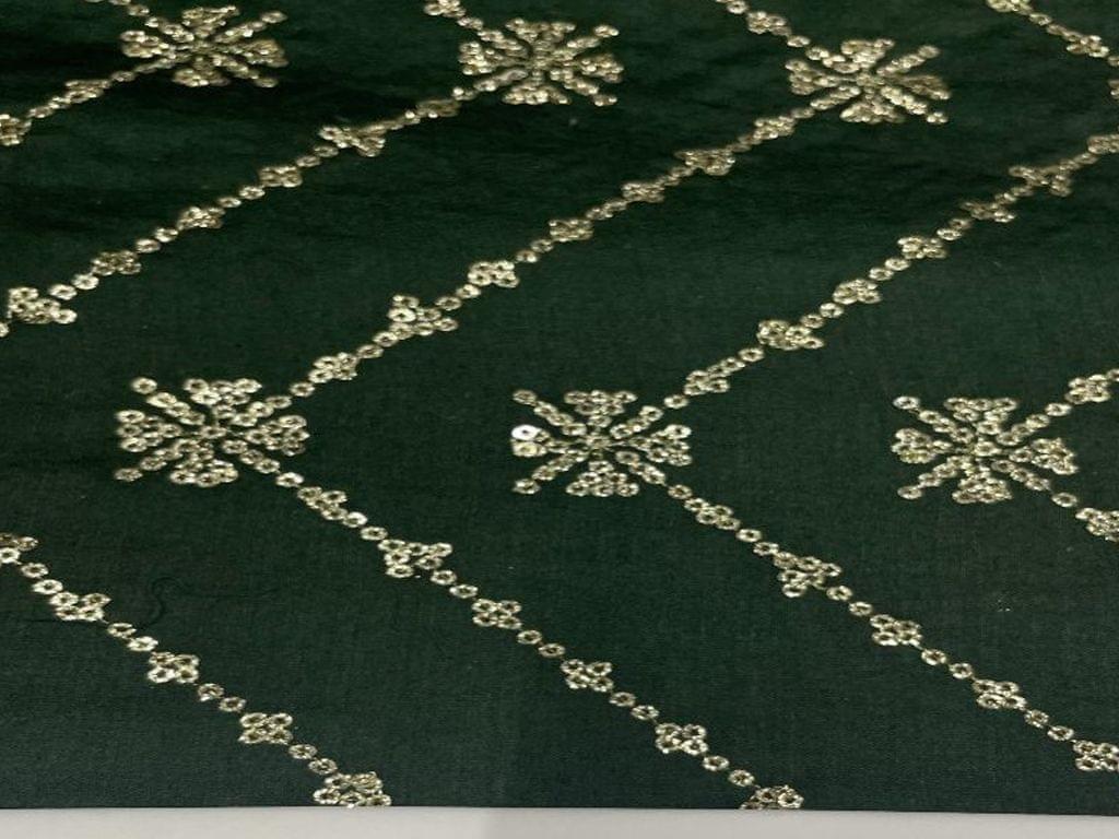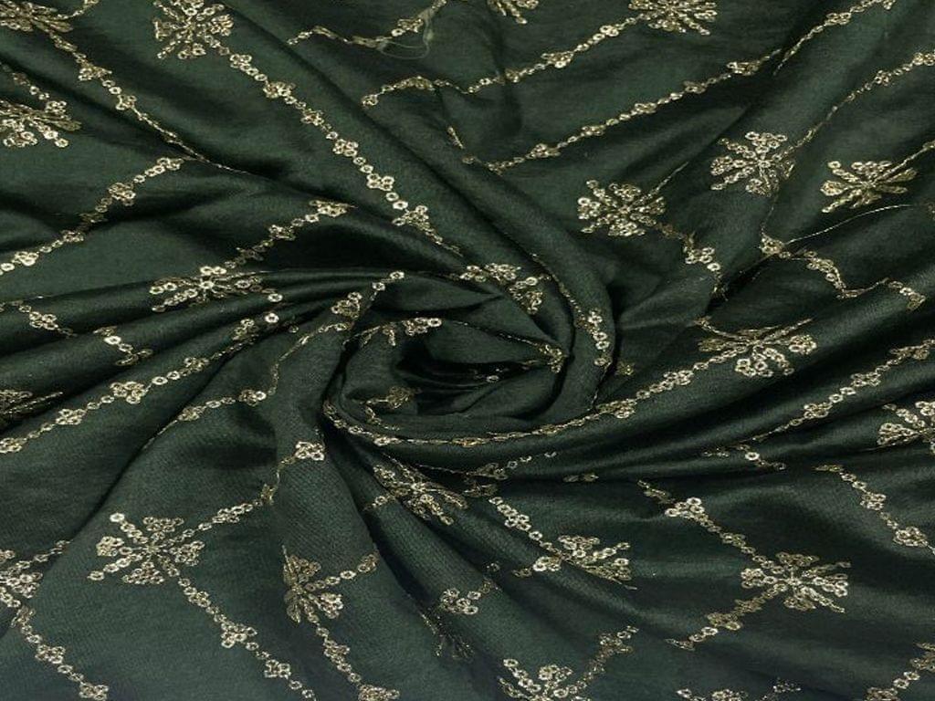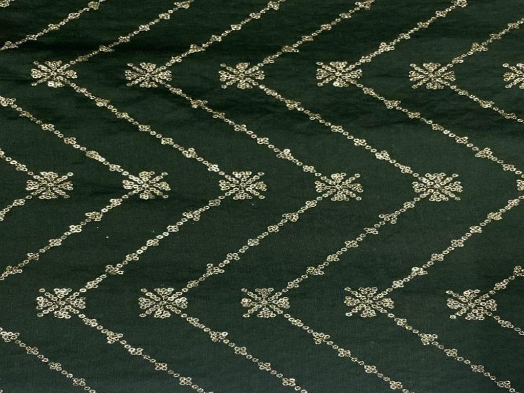 Pure Chanderi Embroidered Silk Dark Green Chevron Width 44 Inch / 112 Cm SKU:K2076