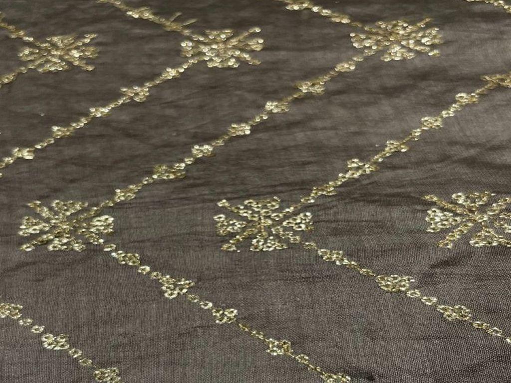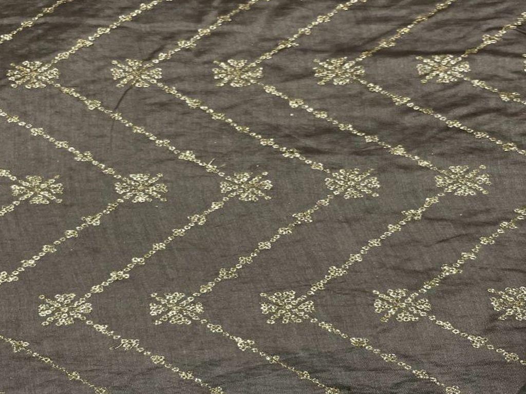 Pure Chanderi Embroidered Silk Grey Chevron Width 44 Inch / 112 Cm SKU:K1298