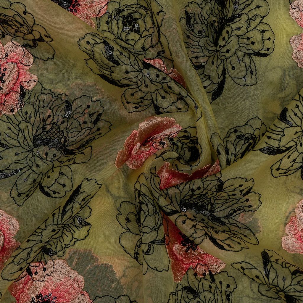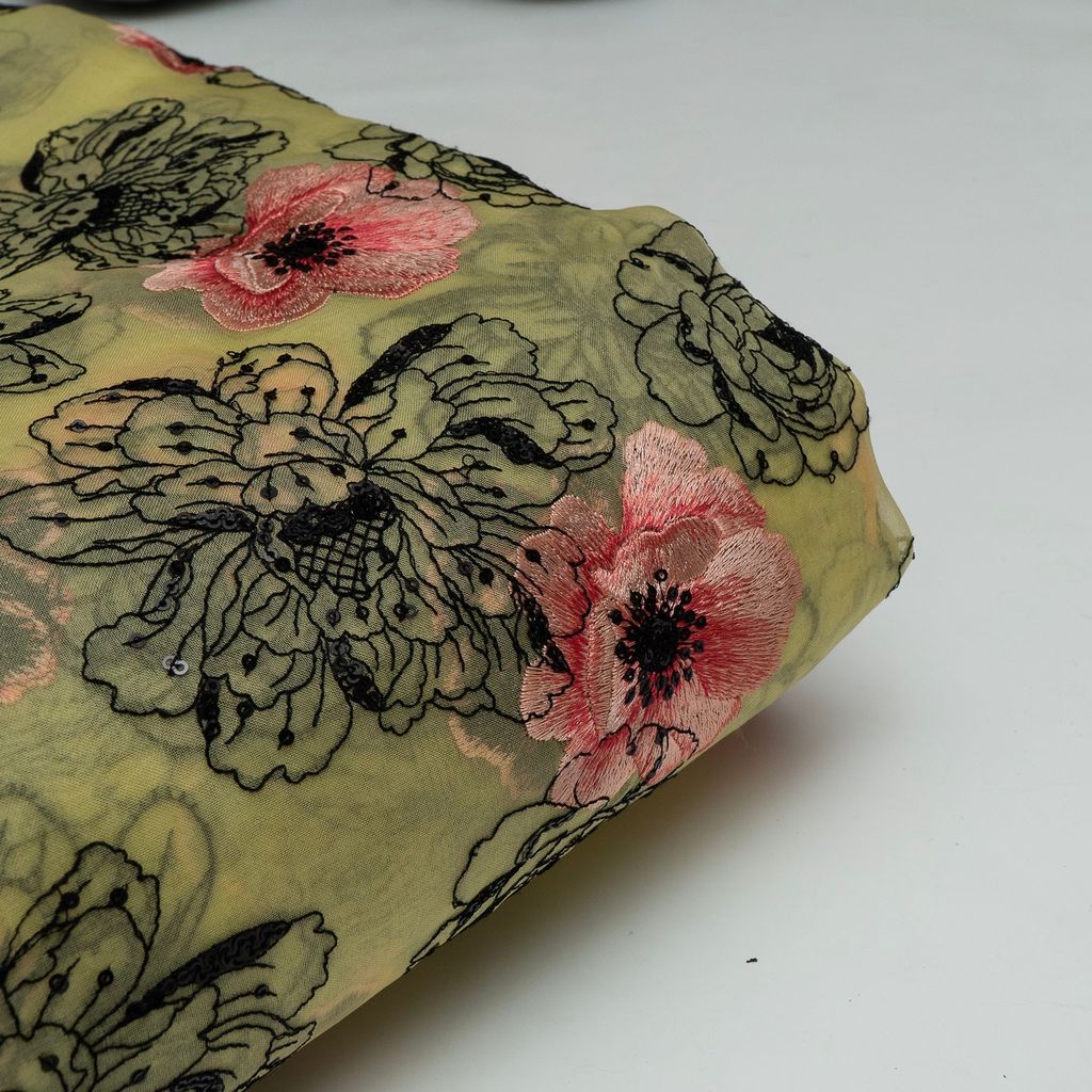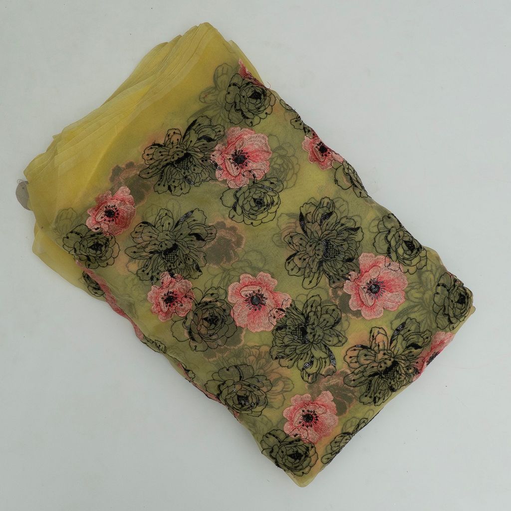 | Fabric Name | Yellow Color Pure Organza Embroidered Fabric |