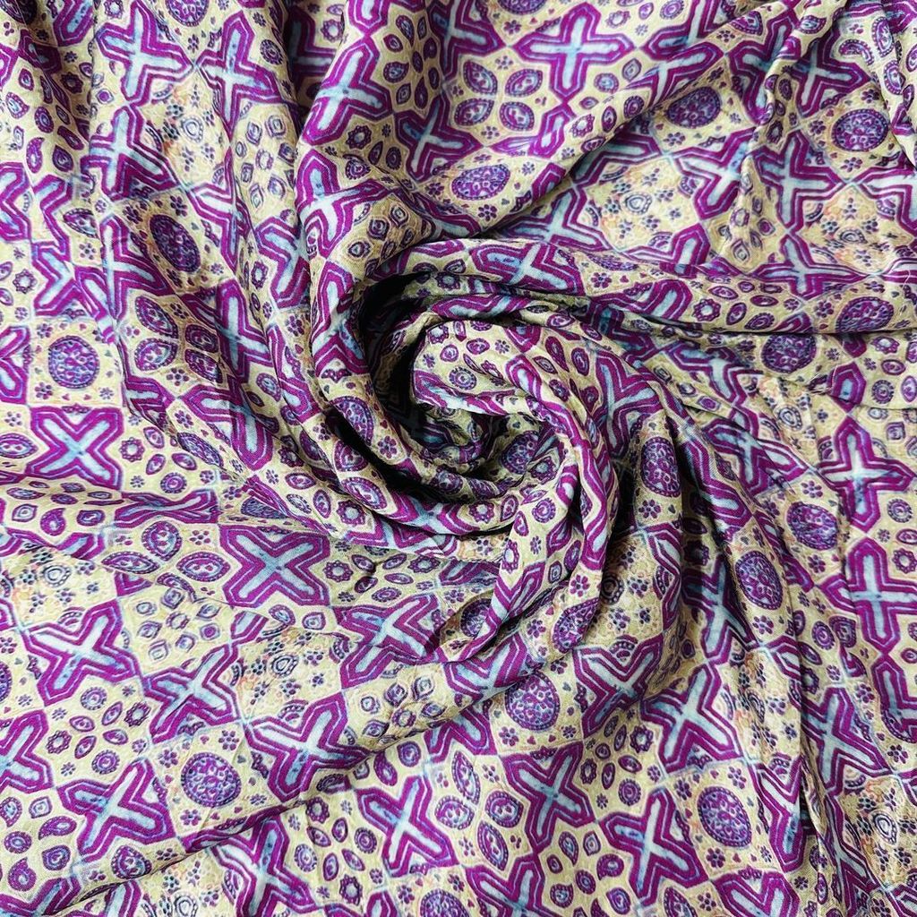 | Fabric Name | Purple & Yellow Geometrical Prints on Modal Satin |