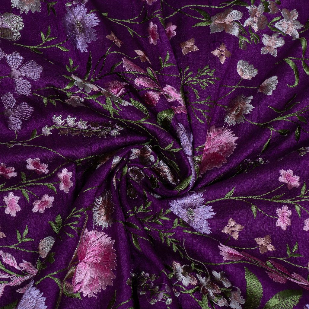 | Fabric Name | Purple Color Pure Raw Silk Embroidered Fabric |