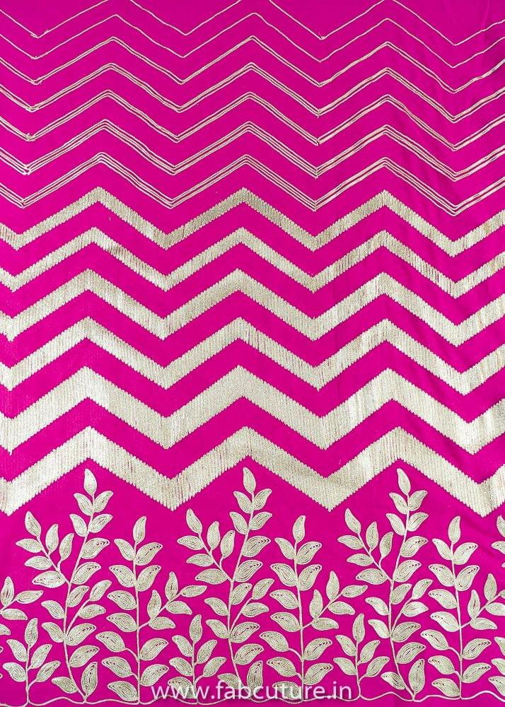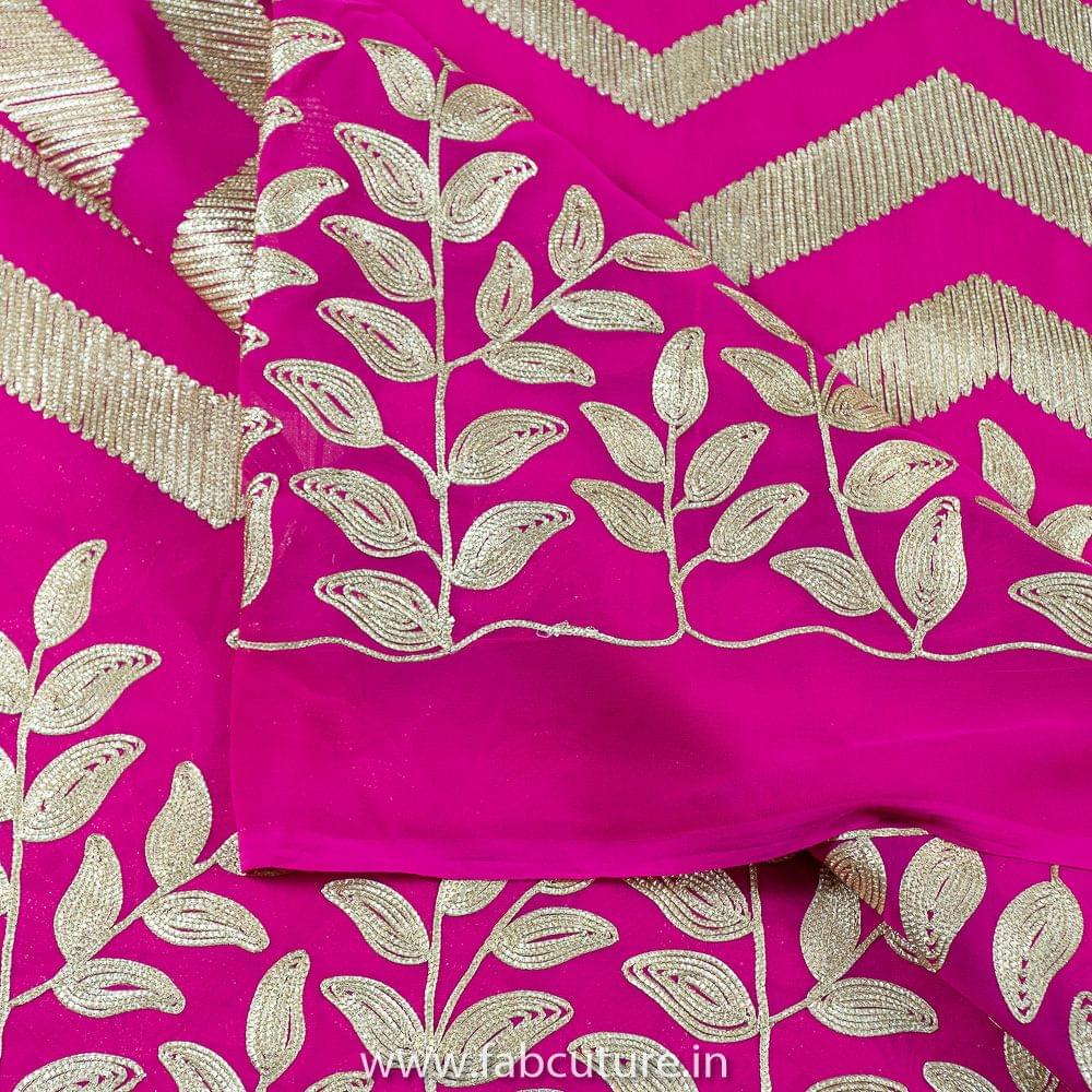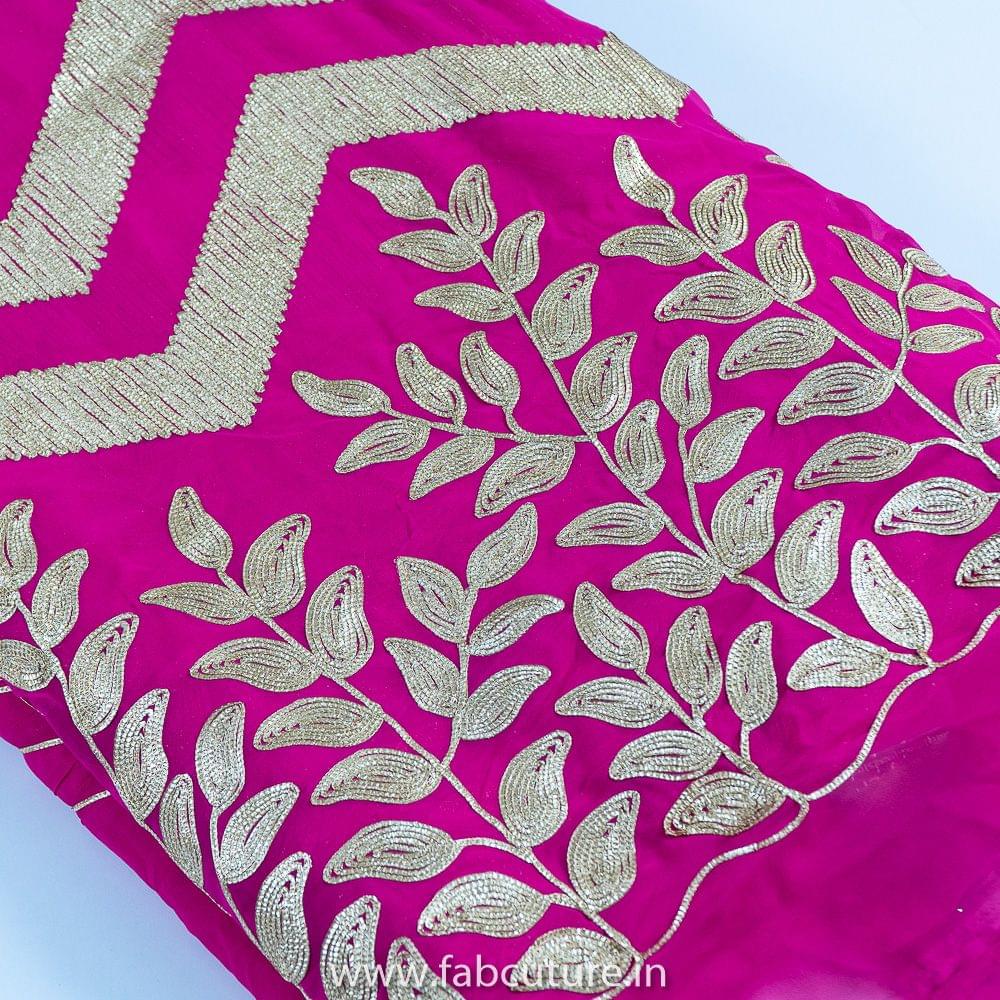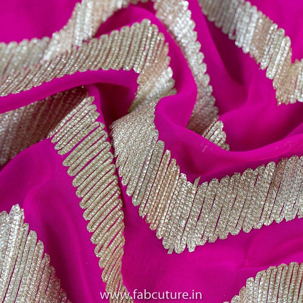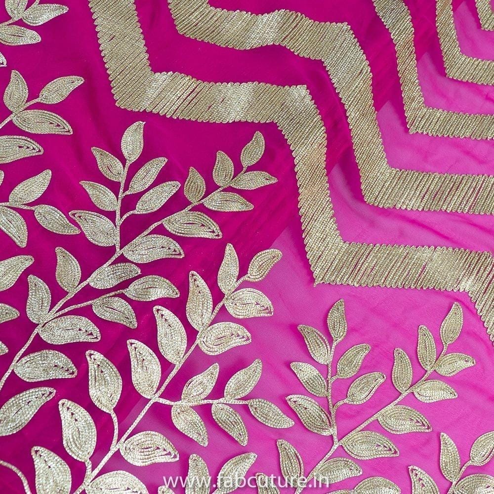 Rani colour Big Width Georgette with Golden Gota embroidered fabric, Zig Zag Patern that makes it unique design, Use your creativity an you can use it to create anarkalies, Dresses, Salwar Kameez, Tops and Skirts SKU:100216298