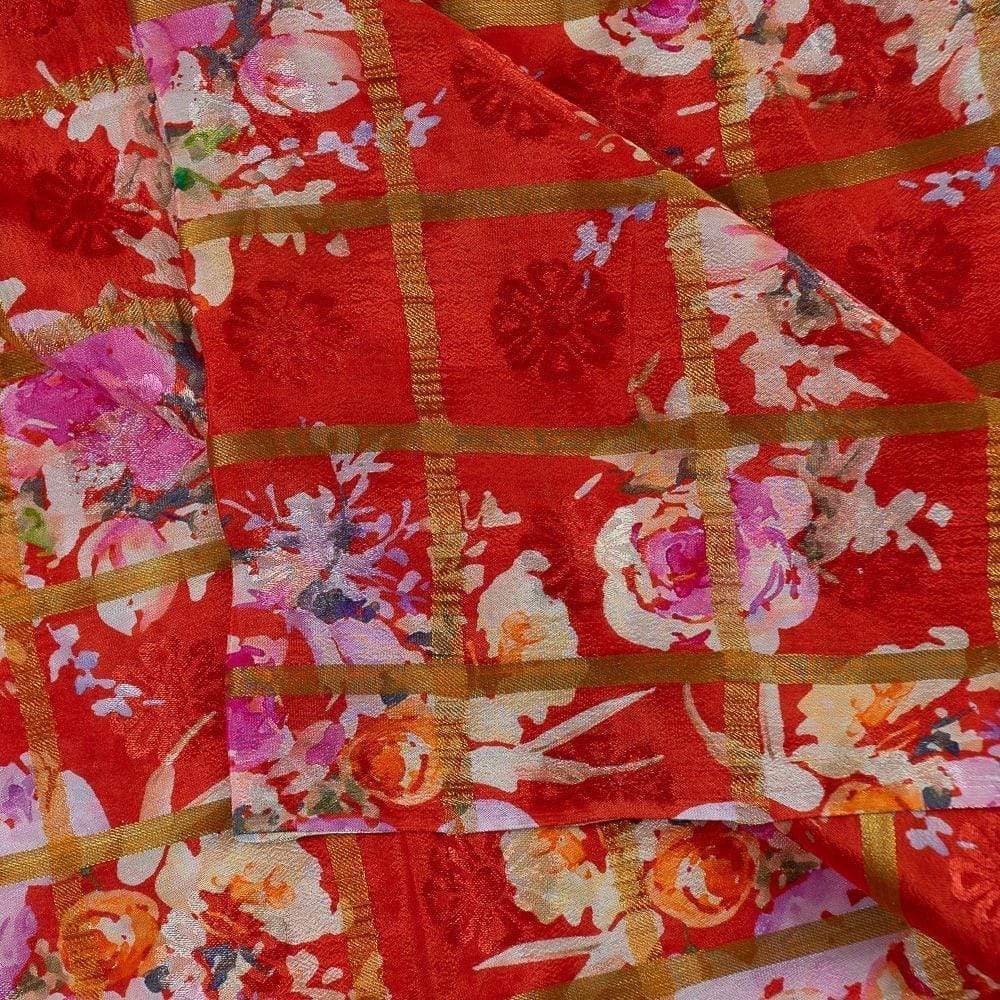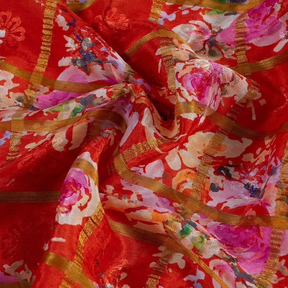 | Fabric Name | Red Color Chinon Jacquard Digital Print |