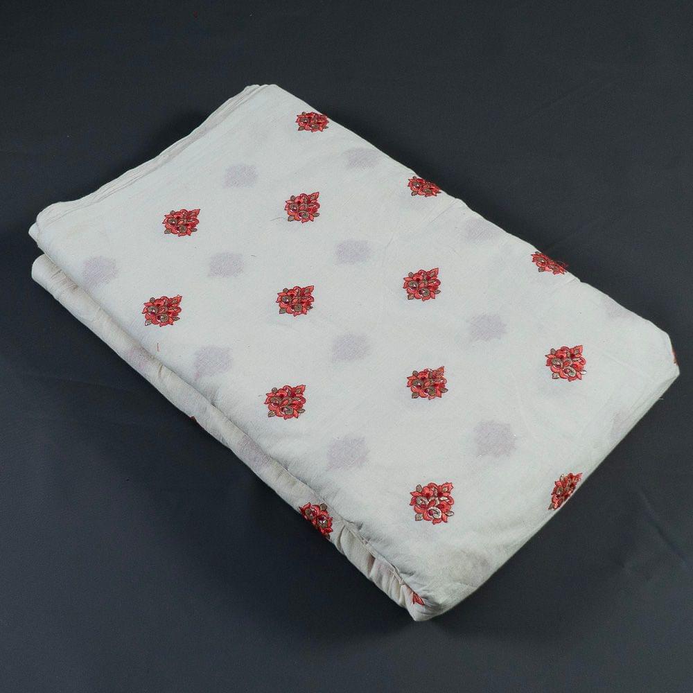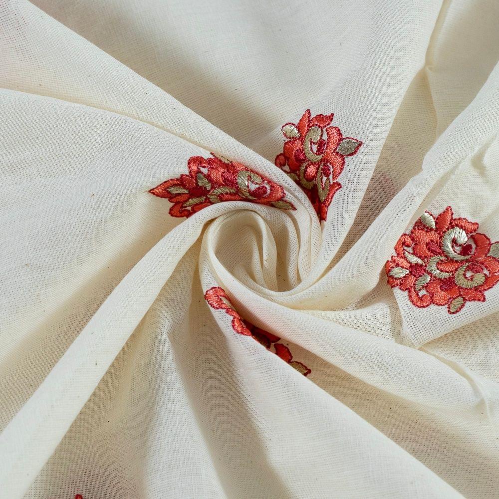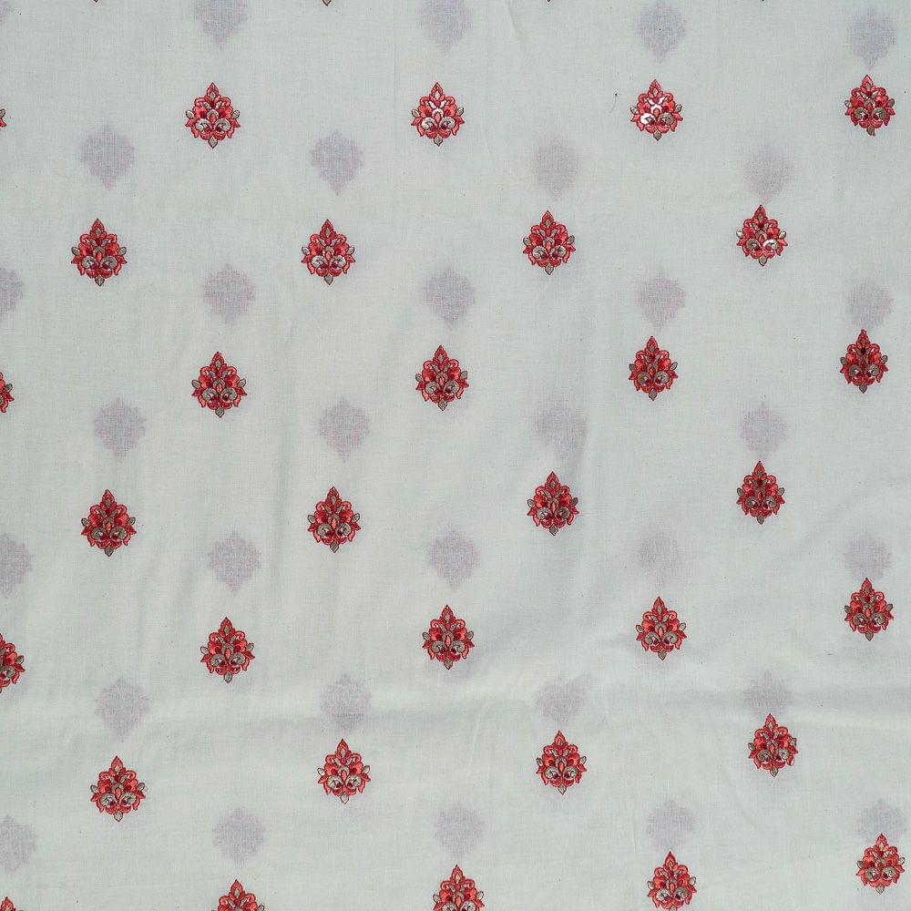 This fabric is from FabCouture Cotton Embroideries and the base is 60's cambric cotton with Gajree coloured floral bootis over the length of the fabric which makes it perfect for kurtis, kurtas, summer dresses and trousers too. SKU:10022922