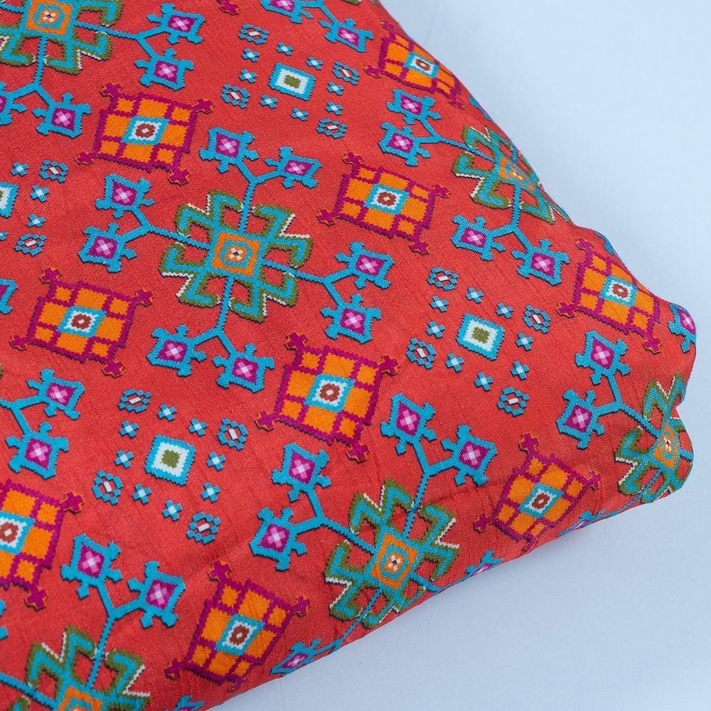 | Fabric Name | Red Color Dola Silk Digital Print |