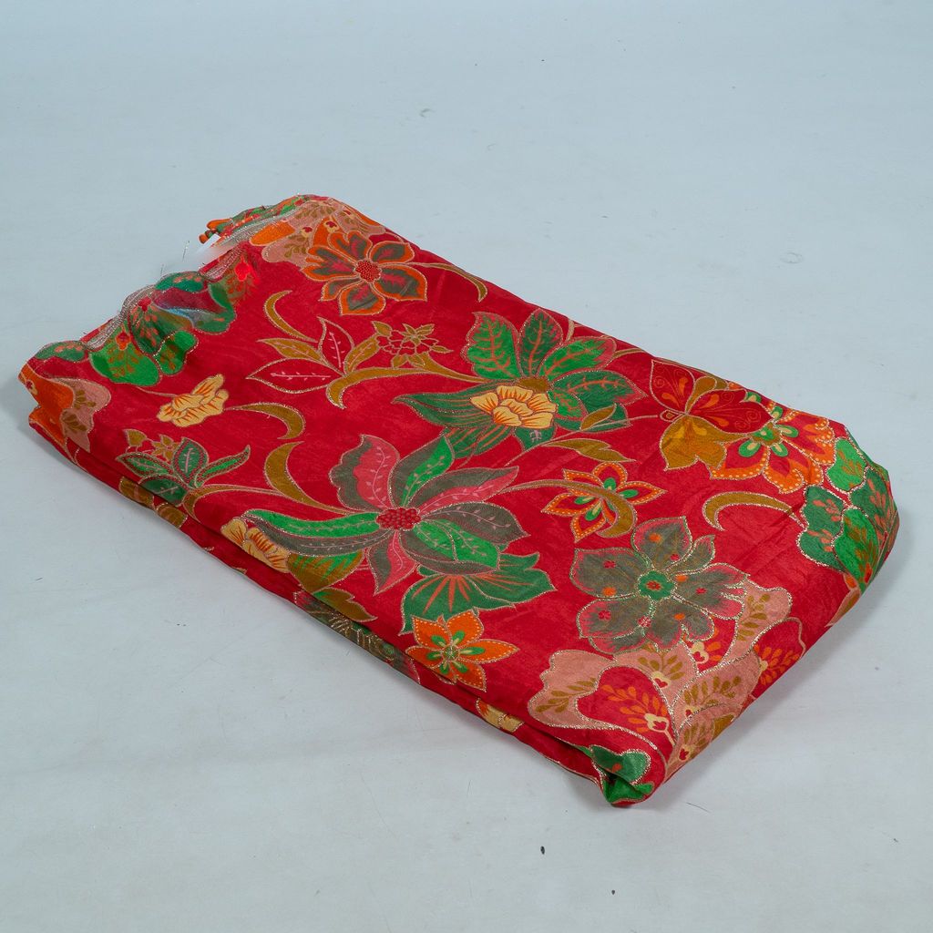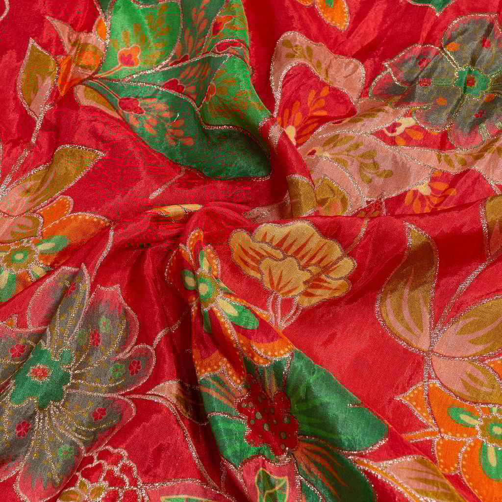 | Fabric Name | Red Color Dola Silk Jacquard Printed Fabric |