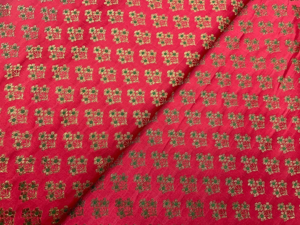 | Fabric Name | Red Color Floral Semi Soft Brocade Fabric |