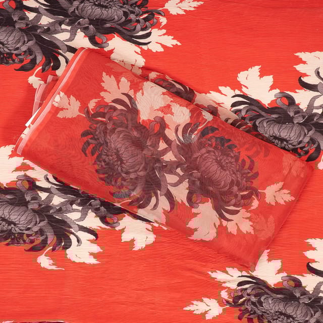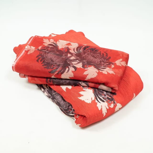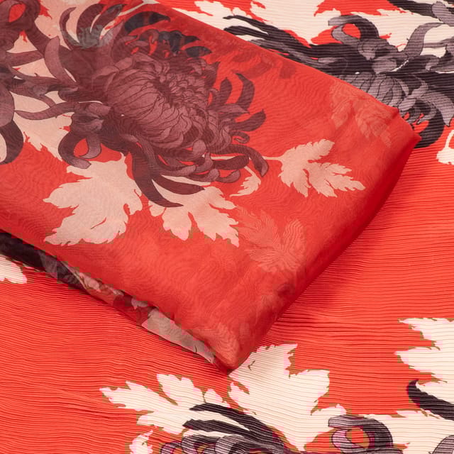 Fabric Name | Red Color Satin Pleated Fabric with Printed Organza Dupatta Set |