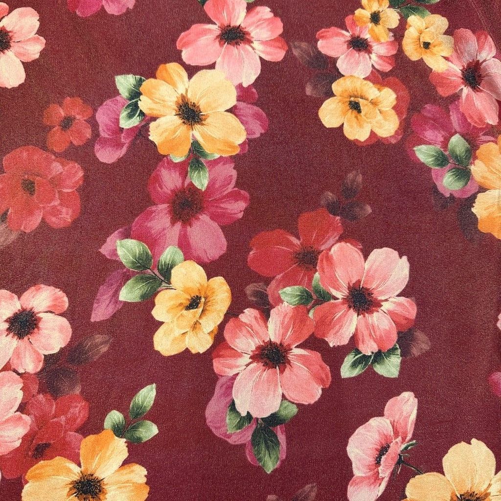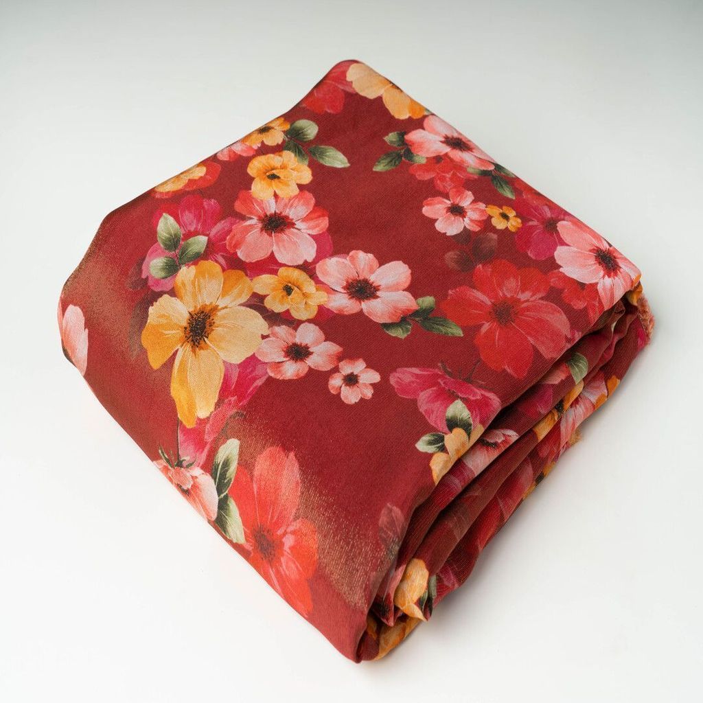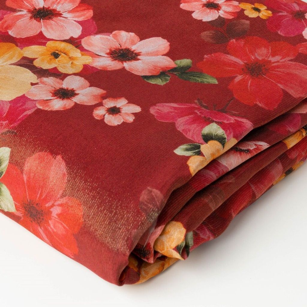 | Fabric Name | Red Viscose Shimmer Georgette with Floral Prints |