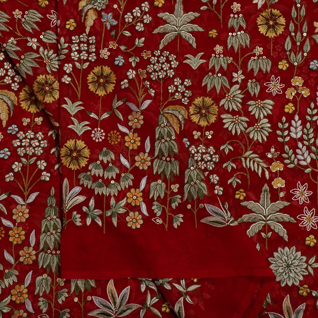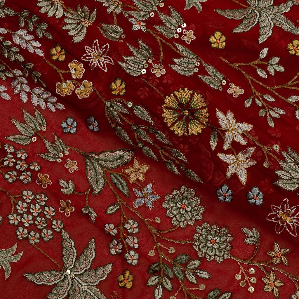Fabric Name | Red Gerogette Embroidered Fabric |