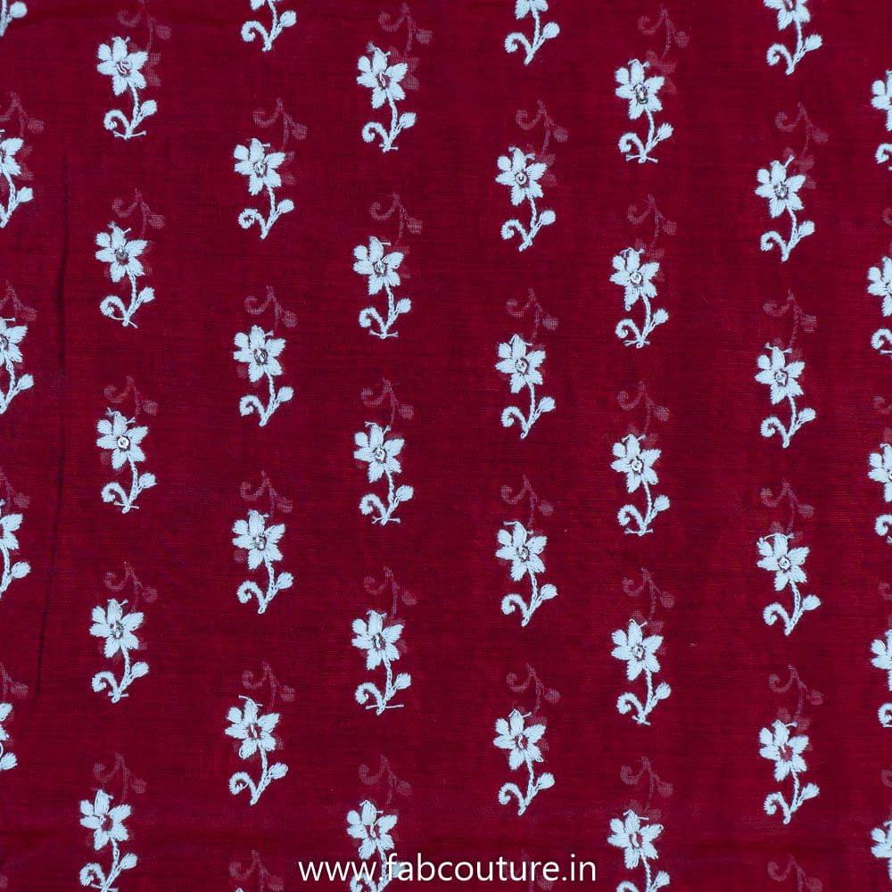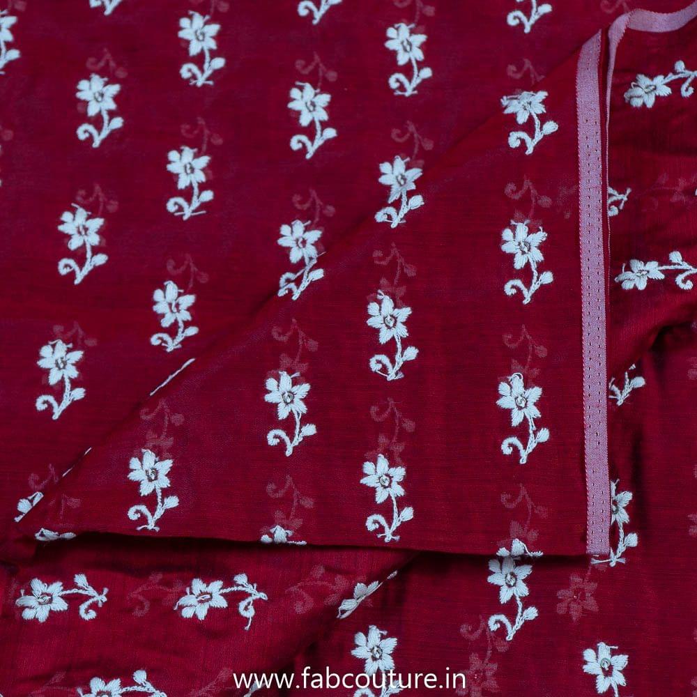 This fabric is from FabCouture Chanderi Embroidery and the base fabric is modal chanderi in a flaming shade of red with white floral bootis over the length of the fabric. It is a good fabric for salwar suits, plazzo suits, kurtis, kurtas, blouses and all. SKU: 100212178