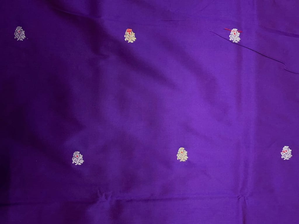 | Fabric Name | Royal Purple Floral Buti Embroidery Taffeta Silk Fabric |
